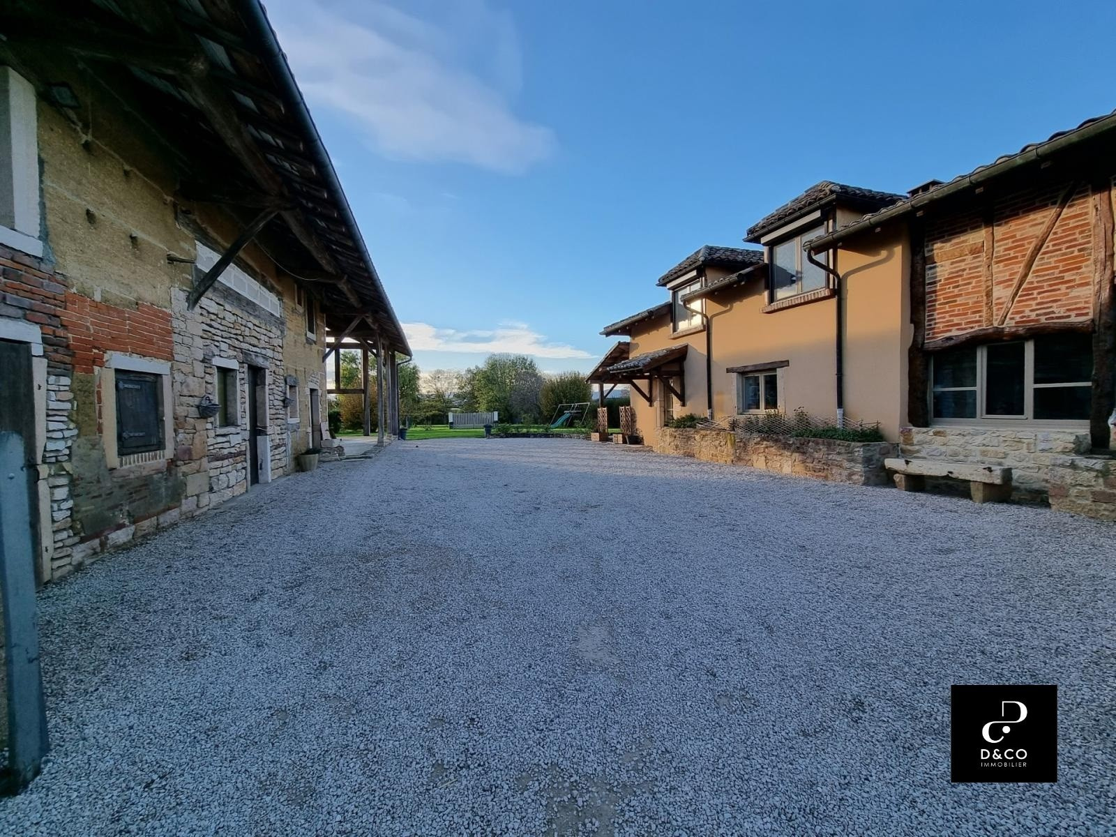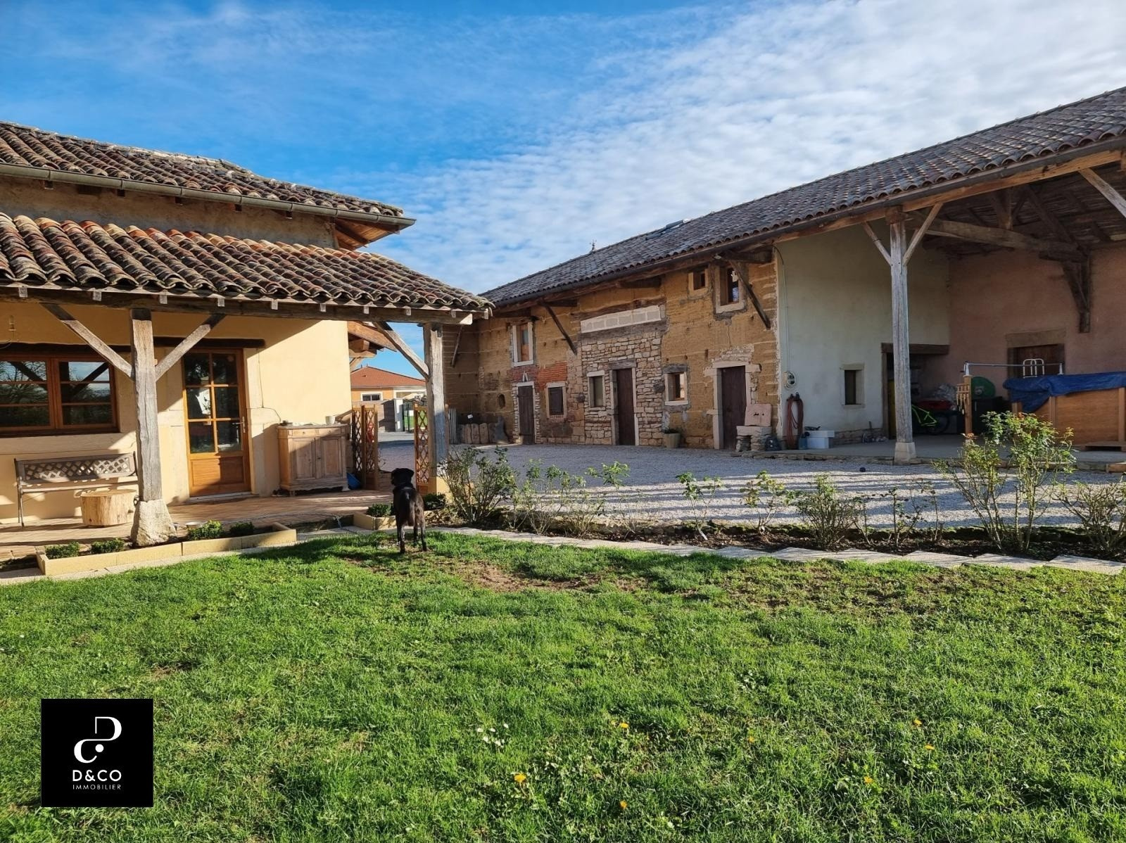 Implantée sur 3137 m² de terrain, dans une commune côtée à 5 minutes de Pont de Veyle, cette ancienne ferme rénovée ne pourra que vous séduire : la maison principale est dotée pour le rez-de-chaussée d'une belle pièce de vie avec une cheminée atypique réalisée en pierre du Beaujolais; un salon très lumineux, une cuisine, une pièce pouvant être réaménager en pièce d'activité professionnelle ou d'espace de jeux enfants, un espace bureau, un cellier, une salle d'eau, un wc; un très bel escalier à deux branches vous permettra d'accéder à l'espace nuit, avec 4 chambres, une belle mezzanine, une buanderie qui fut autrefois une salle d'eau et qui peut le redevenir, un wc. Les dépendances, en cours de rénovations présentent de beaux espaces et pourront accueillir plusieurs chambres ou autre... Le terrain entièrement clôturé, puits, adoucisseur d'eau, une piscine hors sol imitation bois... Vous voulez plus de photos ou visitez ce bien : contactez-moi ! Anne-Laure DREYFUS : 06.50.05.41.08