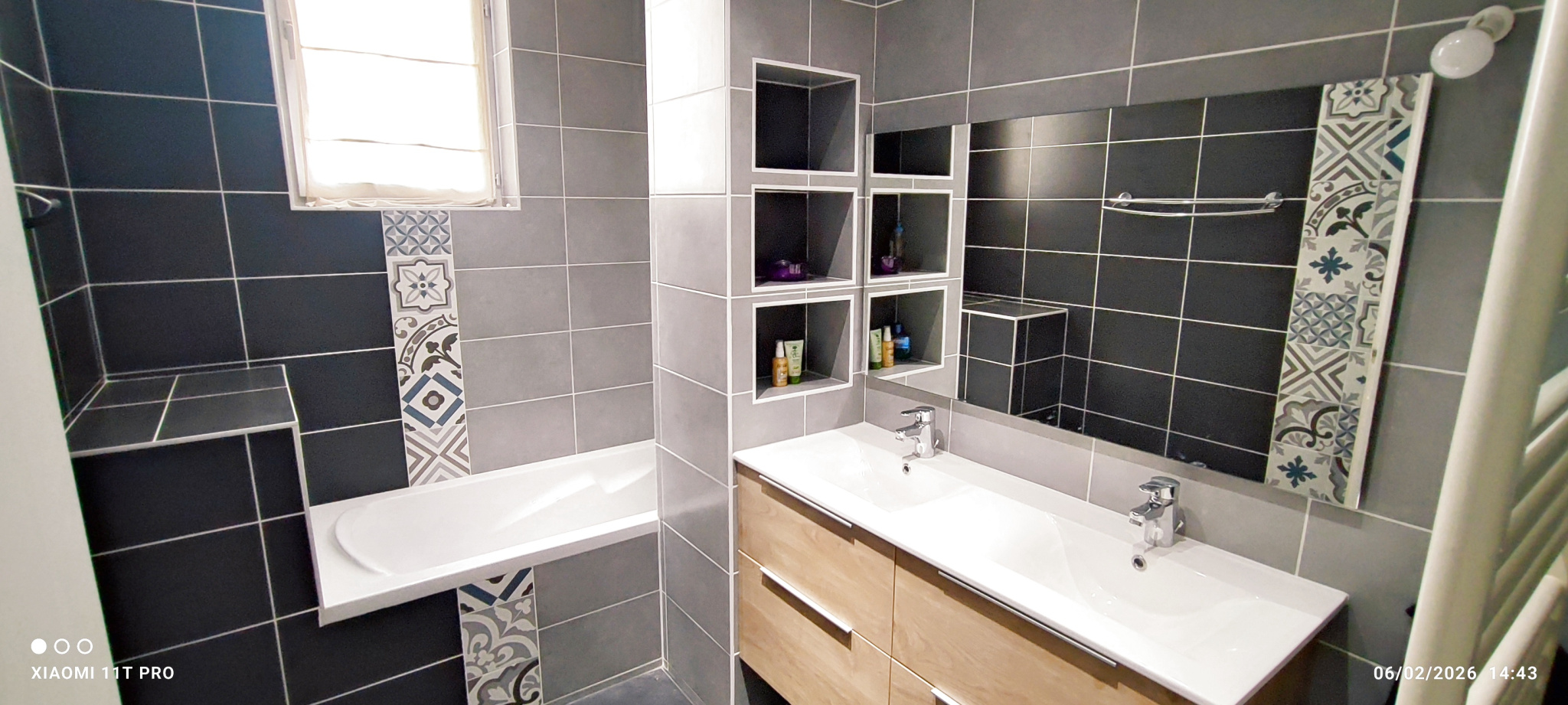 Côté nuit, nous retrouvons deux belles chambres, une salle d'eau avec double vasque et un sanitaire indépendant.