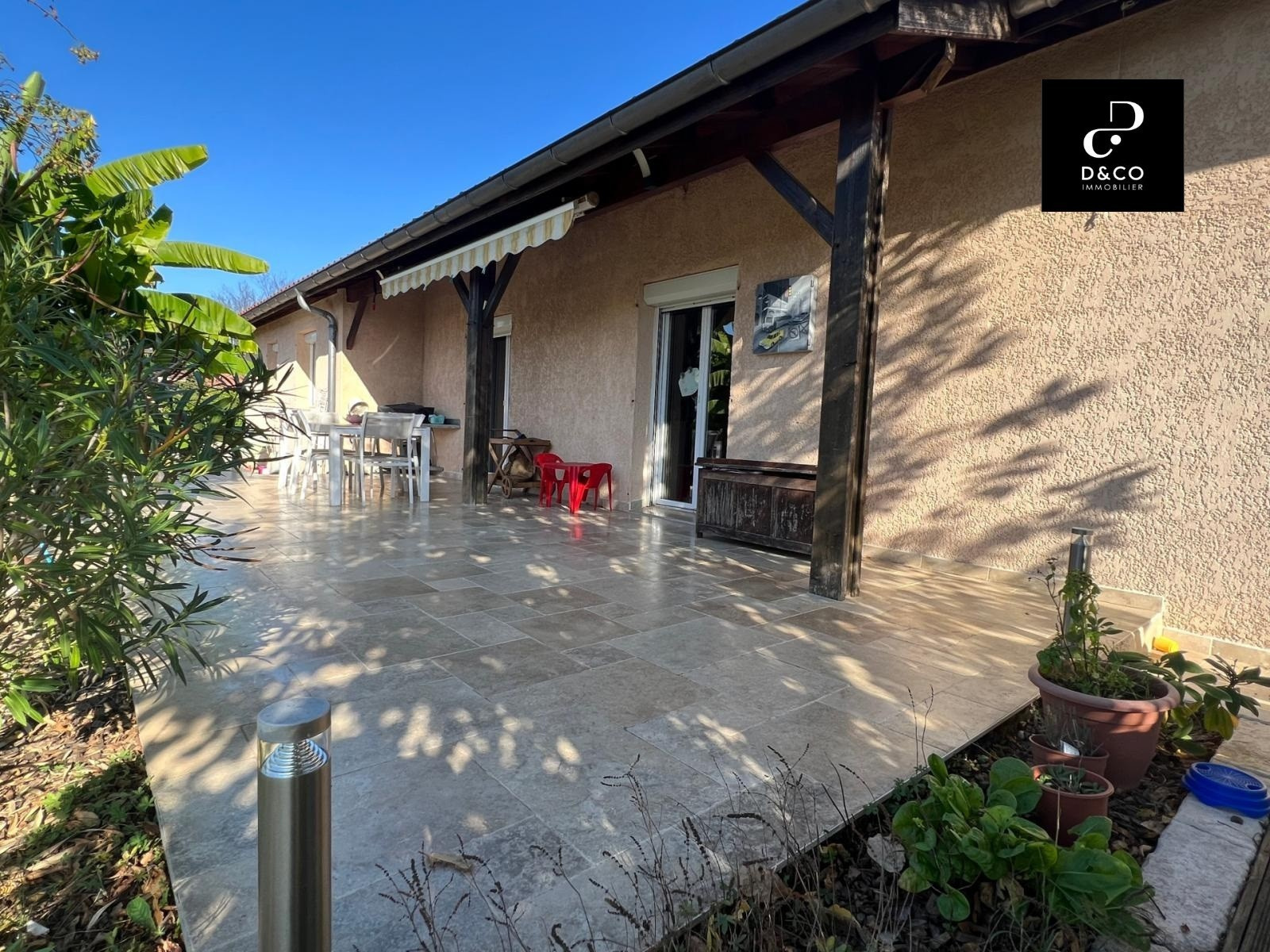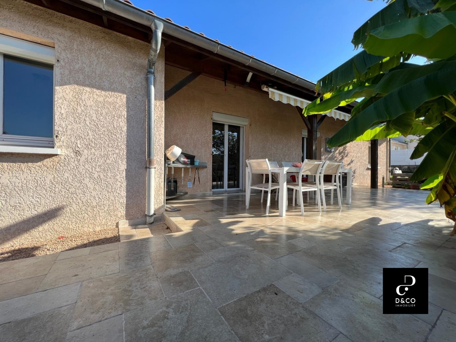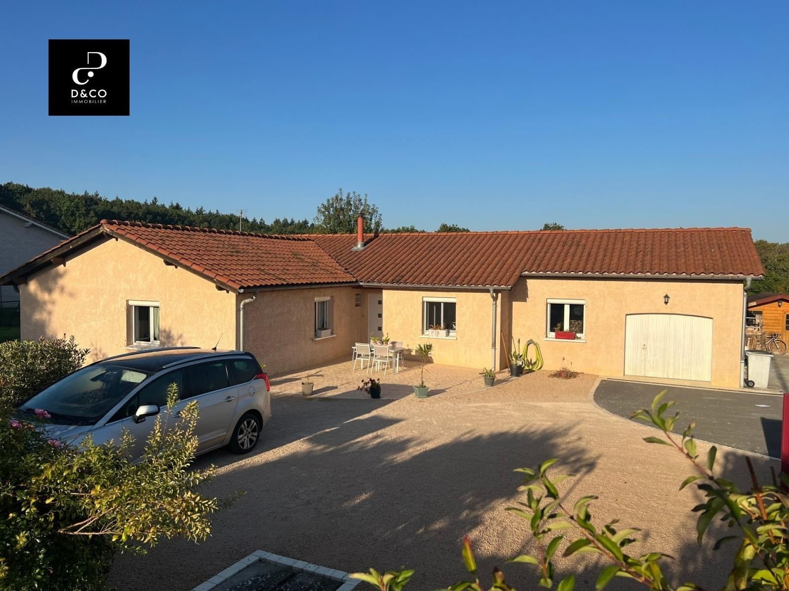Située sur la commune de Chanoz-Châtenay, à 5min de Vonnas et 10 min de Châtillon sur Chalarone, je vous invite à découvrir cette très jolie villa de plain pied d'une surface habitable d'environ 149m² . L'entrée se fait sur grand et lumineux salon/séjour d'environ 57m² avec une cuisine ouverte. Cette espace de vie donne directement sur une belle terrasse en travertin de plus 42m² orientée Ouest. L'espace nuit quant à lui propose 4 belles chambres dont une suite parentale de 17m² avec salle d'eau et dressing, une grande salle de jeux (ou 5ème chambre en fonction de vos besoins), une salle de bains avec baignoire et double vasque , un wc indépendant. Un grand garage de 50m² avec une buanderie vient compléter le bien. Sur l'extérieur, une cour pavée et bitumée, une terrasse arborée, un chalet de jardin et un poulailler viennent agrémenter cette villa. L'ensemble sur un terrain d'environ 1310m² arboré et entièrement clos avec un portail automatisé. Système de chauffage: Poêle à bois et radiateurs à fluide caloporteur. Double vitrage Adoucisseur d'eau Si vous souhaitez plus d'informations, n'hésitez pas à contacter Loïc Didelot au 06.70.75.09.38