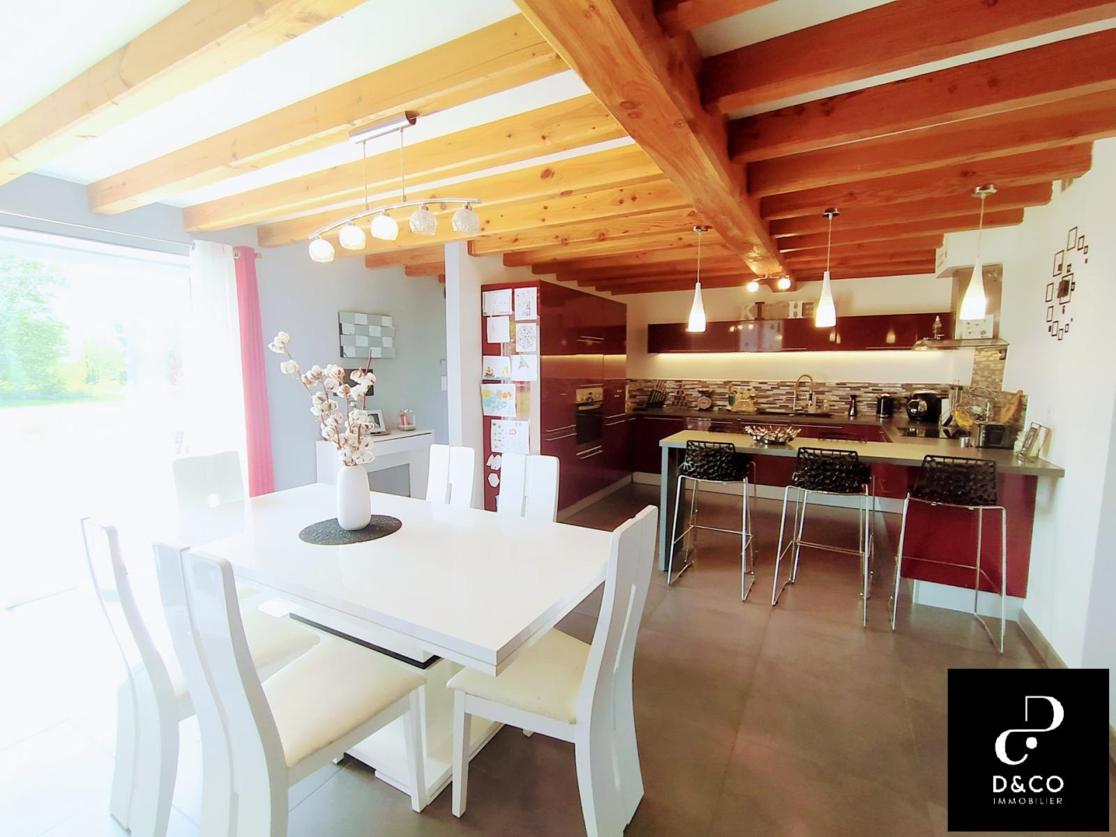 AU CALME vue campagne, à moins de 15 minutes de CRECHES sus SAONE et du TGV sur 2400 m² de terrain , Venez découvrir cette maison ossature bois. Vous profiterez d'une maison de 145 m² entièrement rénovée avec cuisine équipée, salon, salle à manger, bureau mezzanine, 3 chambres (avec possibilité de prévoir une chambre parentale en RDC), Salle de bain et toilette séparé, Buanderie, Ainsi qu'un solarium. 2 garages. Chauffage électrique au sol et cheminée. En plus vous bénéficierez de 80 m² dans le prolongement de votre maison pour vous agrandir (à finir de rénover me contacter), comprenant; Une cuisine ouverte sur pièce de vie. 3 chambres, salle d'eau, toilette. Le tout sur un terrain plat sans vis à vis avec Une piscine sécurisée. Maison idéale pour le télétravail grâce à la fibre. A 5 minutes des commerces. Honoraires à la charge du vendeur. Les informations sur les risques auxquels ce bien est exposé sont disponibles sur le site Géorisques : www. georisques.gouv.fr . Agent commercial RSAC Mâcon 449.566.785 - www.dandco-immobilier.com