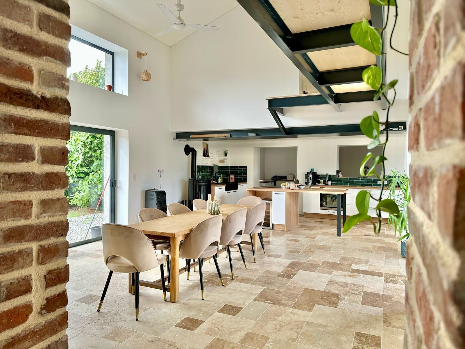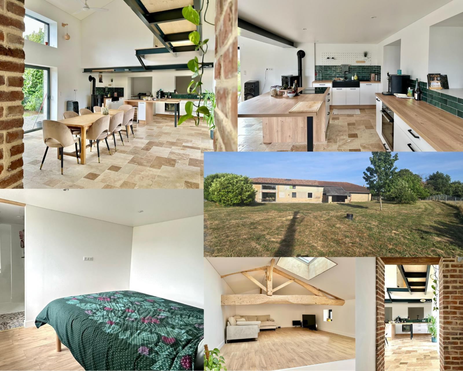 Venez découvrir cette ferme rénovée avec beaucoup de goût, de belles prestations et beaucoup de cachet alliant ancien et modernité. Ferme de 143 m2 habitables avec de nombreux dépendances. Elle est composée d'un grand hall d'entrée, d'une buanderie, d'une cuisine équipée ouverte sur la salle à manger, un coin salon en mezzanine. Une suite parentale de 20m2 avec salle d'eau et dressing, d'un wc, d'un bureau.