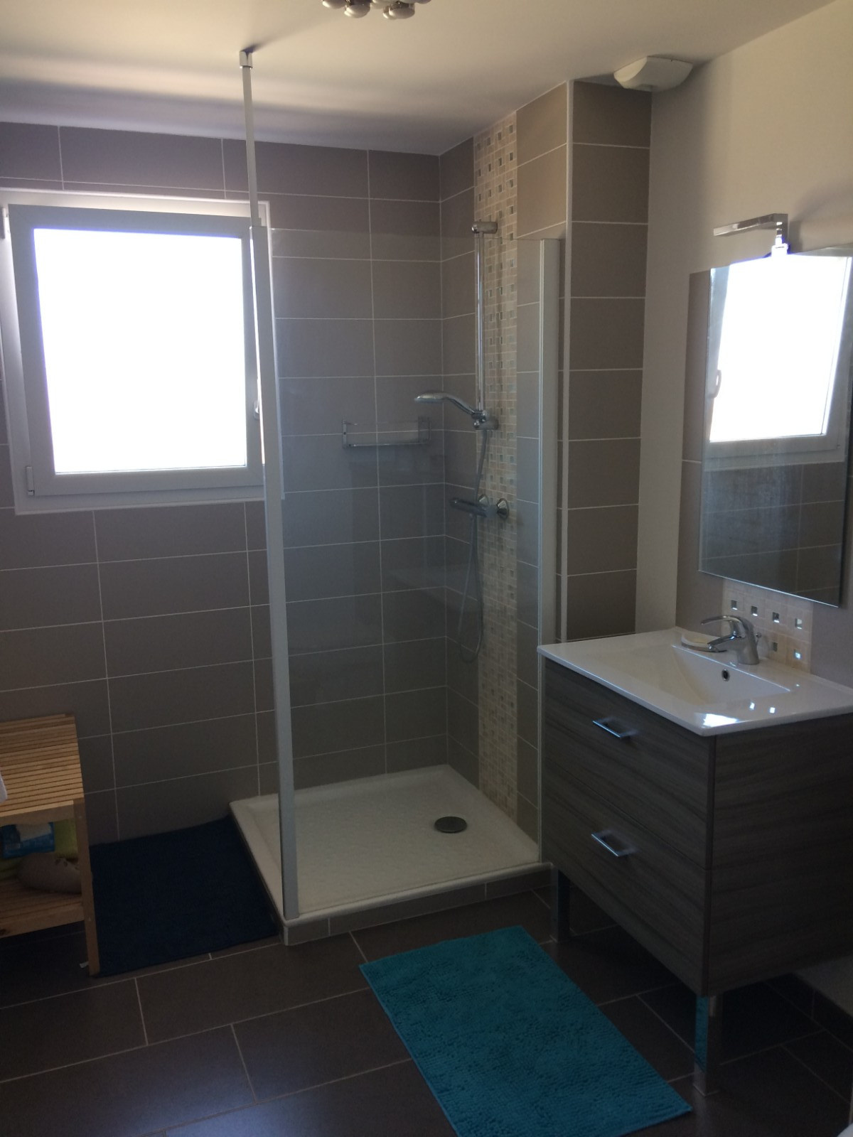 Charmante villa de 2014 RT 2012 composée d'une entrée, séjour, cuisine ouverte aménagée équipée, salle d'eau WC, WC indépendant, Garage, le tout sur un terrain clos de 160 m2