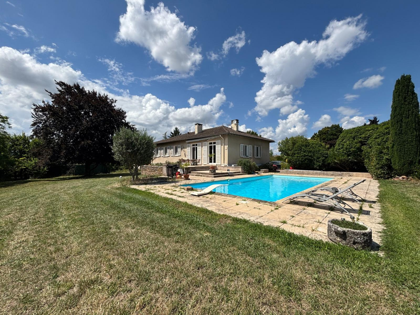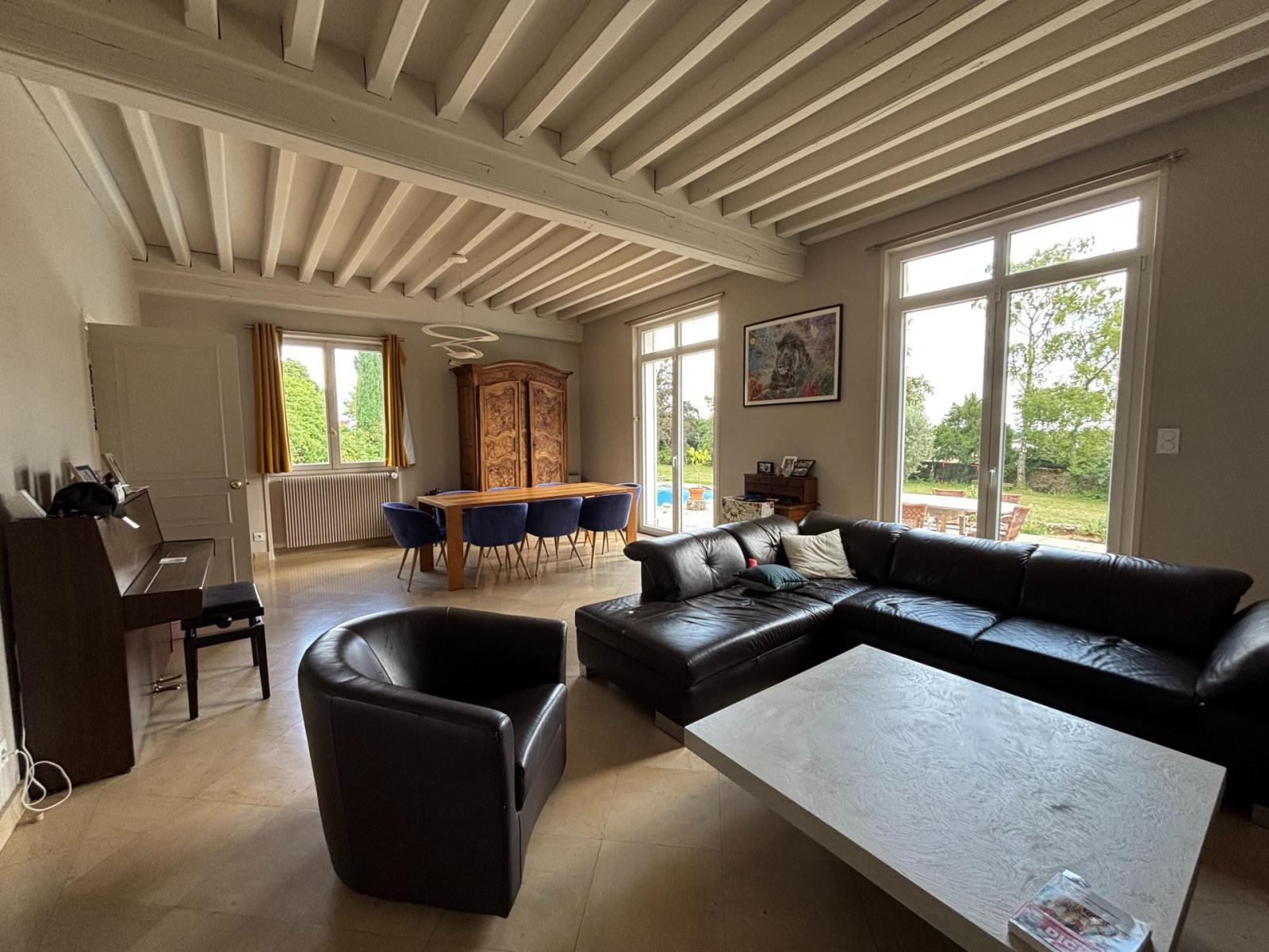 Charnay-lès-Mâcon (71850)Découvrez ce bien d'exception dans un coin prisé de Charnay les Mâcon. Une maison de 1968 de 216m² sur sous-sol avec un grand terrain de 2370m². La maison se compose d'un grand hall d'entrée, une grande cuisine fermée, une belle pièce de vie avec le charme de l'ancien et une vue sur le jardin et la piscine. On continue sur 4 chambres dont une suite parentale (dressing et salle de bain), une grande salle de bain douche et baignoire. Au sous sol, la buanderie, une chambre, une cave, un bureau, une salle de jeux, une salle de sport et le grand garage. A l'extérieur, on est au calme sans vis à vis une grande terrasse et une jolie piscine au chlore de 11x5m². Le tout sur un terrain de 2370m². Pour plus de renseignement n'hésitez pas à me contacter au 06.61.94.05.17 Jules DREYFUS