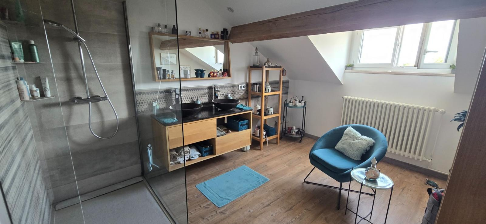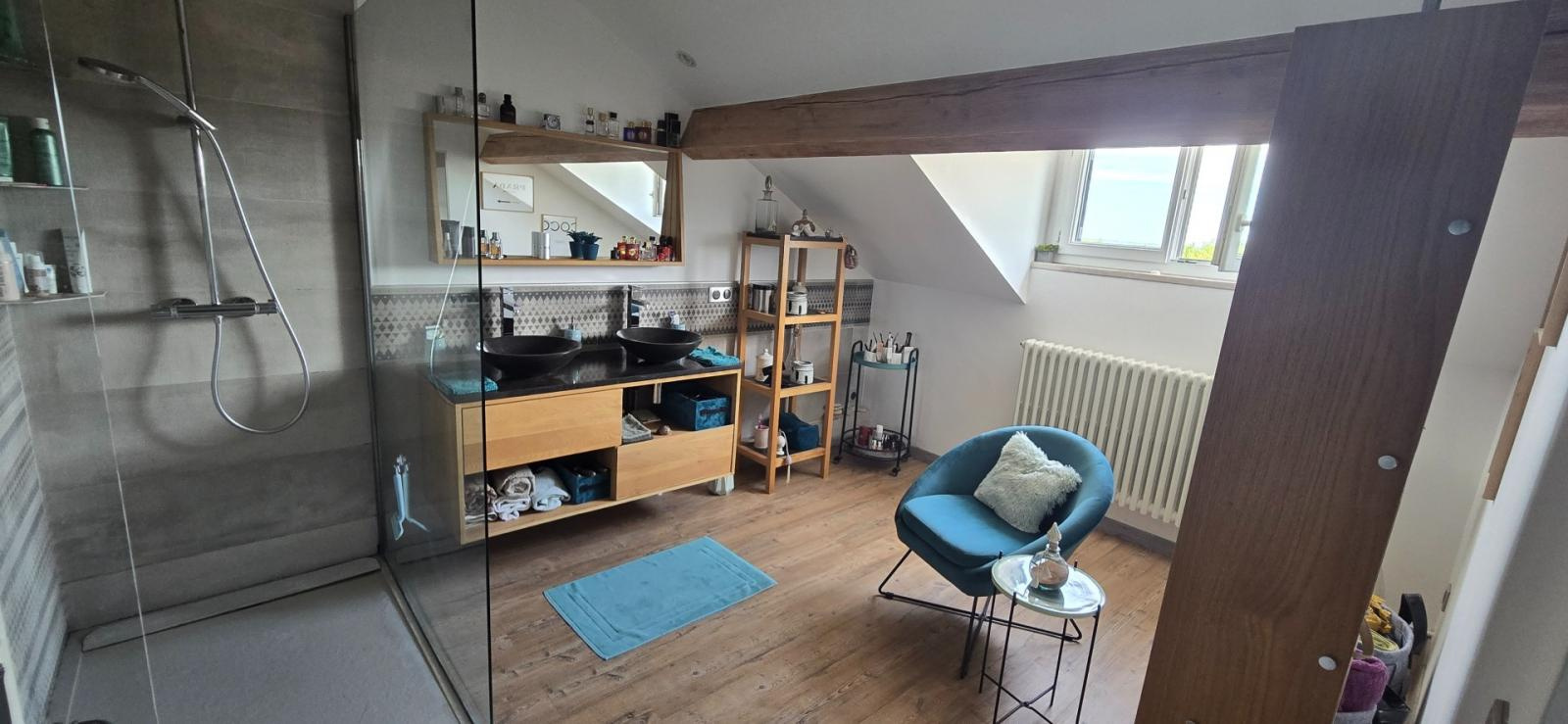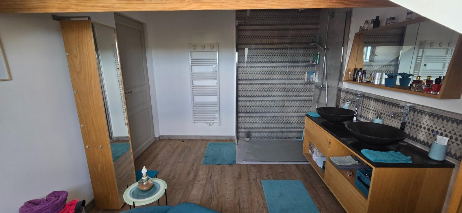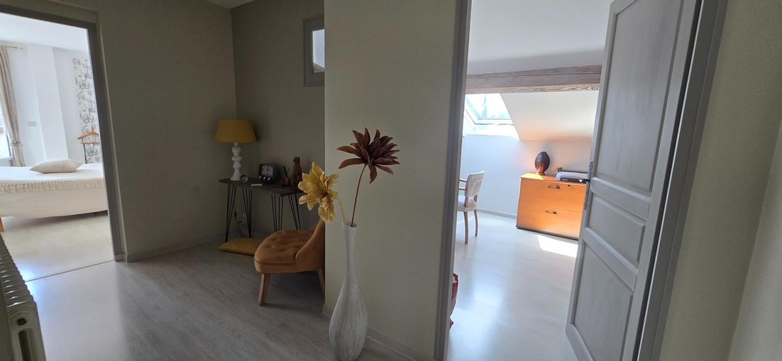 A l'étage : une mezzanine dessert 3 chambres spacieuses, l'une d'elle dispose d'un dressing et d'un balcon.