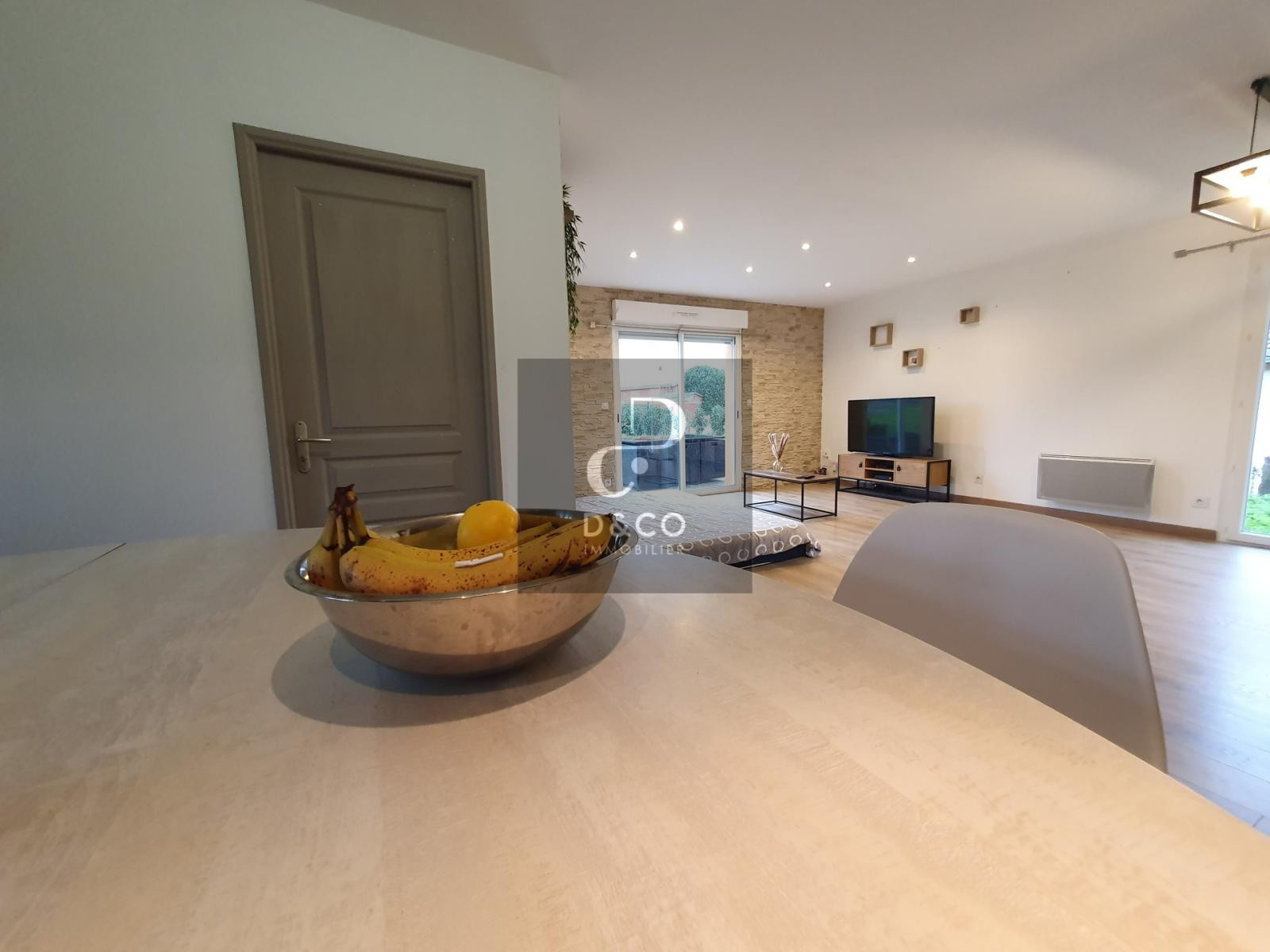 Venez découvrir cette jolie villa dans un lotissement calme, d'une surface de 95 m² habitable. Composée d'une entrée, une cuisine ouverte et équipée, un grand salon séjour, une salle d'eau, un wc et trois chambres avec placards. Un garage attenant à la pièce de vie à été en partie isolé et peux servir autant pour la voiture, qu'en pièce supplémentaire. Le tout sur un terrain de 981 m²