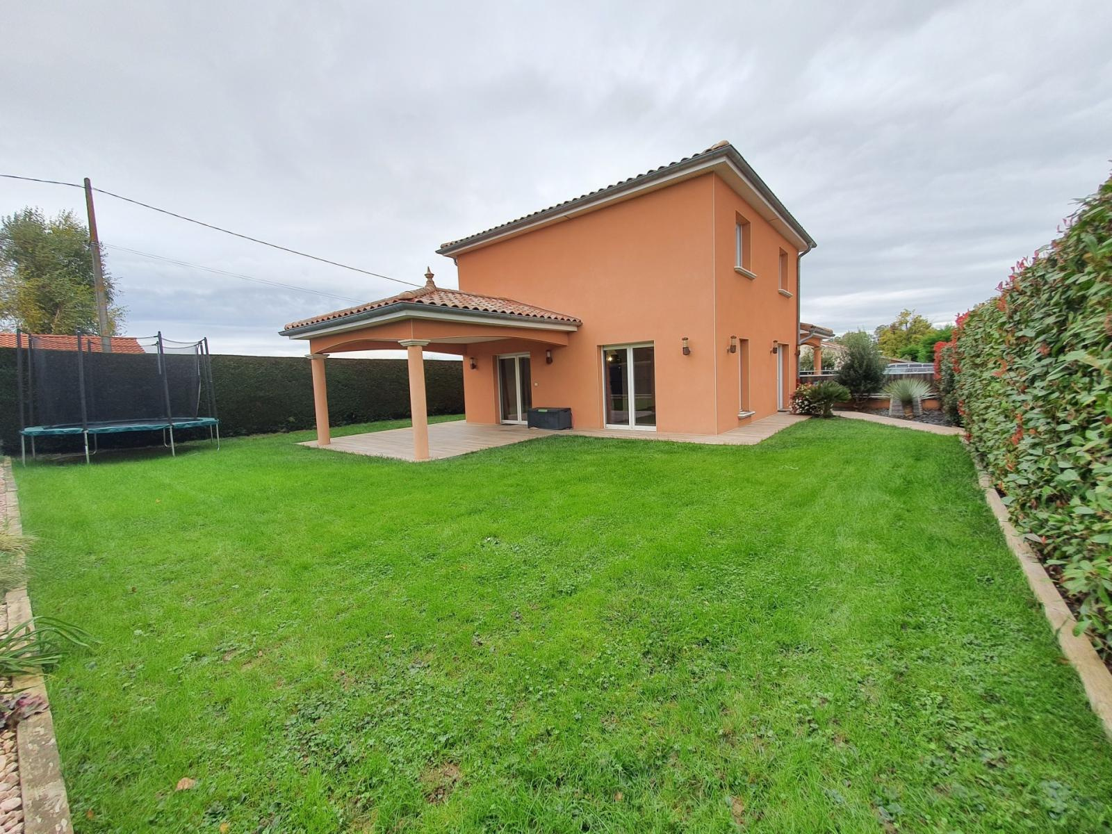 Venez découvrir cette grande villa à seulement quelques minutes de Saint-Didier-sur-Chalaronne. Au rez-de-chaussée vous trouverez une belle entrée avec placards muraux, un grand salon/séjour très lumineux grâce à ces deux baies vitrées donnant sur une première terrasse, une cuisine équipée ouverte qui donne sur une seconde terrasse, une suite parentale avec salle d'eau et placards muraux, un wc et un accès garage. A l'étage : 3 belles chambres toutes avec placards muraux, une grande salle d'eau et un wc. Le tout sur un terrain de 413m² entièrement clôturé, arboré et sans vis-à-vis, deux terrasses carrelés dont une couverte. Hors lotissement dans un quartier très calme, elle bénéficie d'un garage d'env 20 m² les plus : nombreux rangements, maison lumineuse, très bien entretenue, spacieuse et très bien située ! N'attendez plus pour une visite !