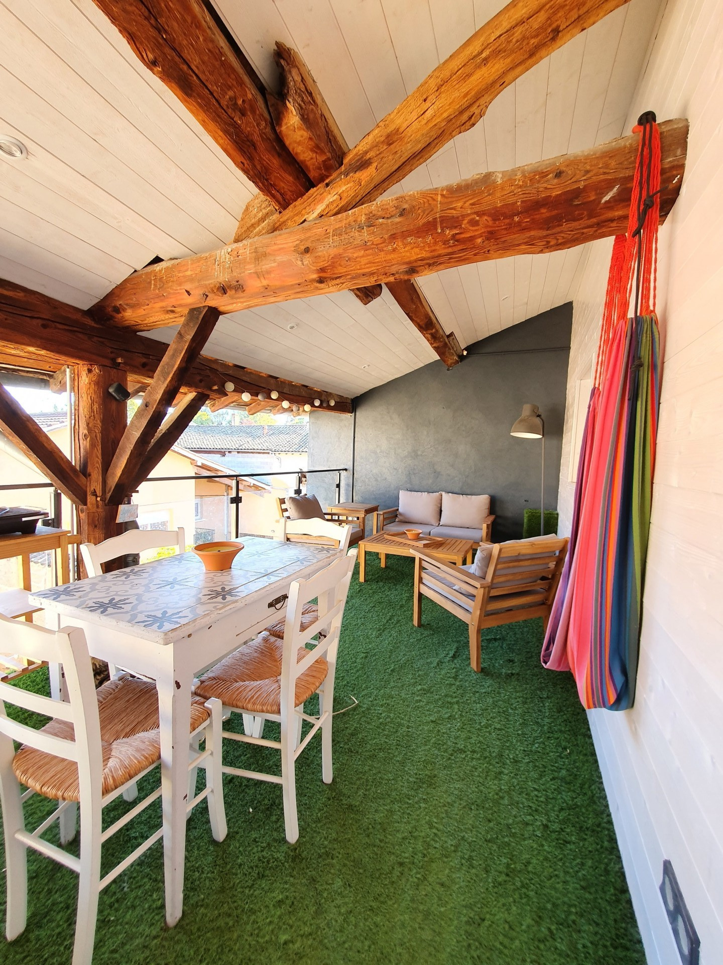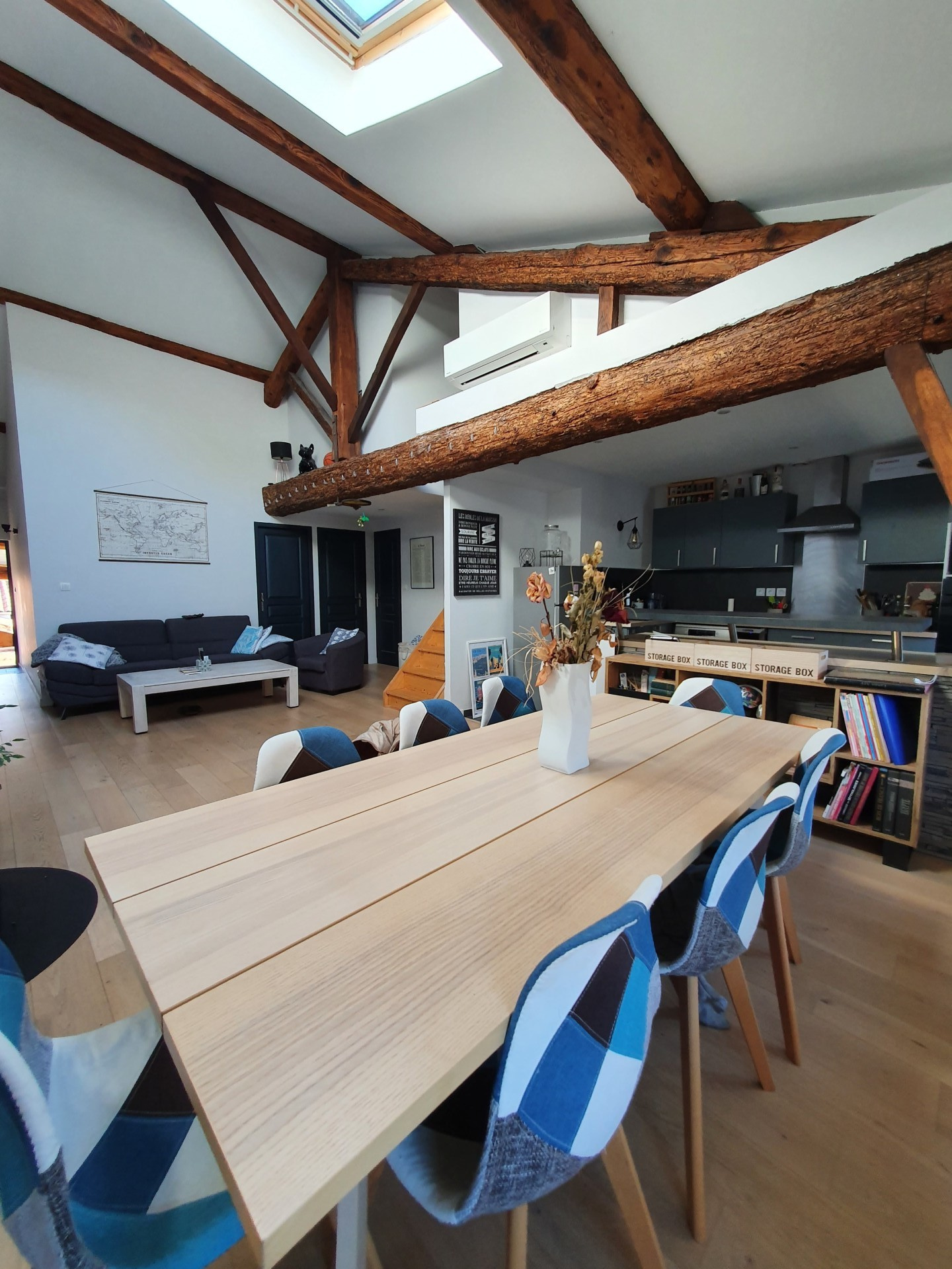 Venez découvrir ce superbe appartement ou vous n'aurez qu'à poser vos valises ! Située au coeur de Thoissey, proche de tous les commerces et services et au sein d'une petite copropriété, ce bel appartement se trouve au 2ème et dernier étage d'un immeuble ancien. Composé d'un salon séjour, une cuisine ouverte et équipée, un wc, une salle d'eau, et 3 chambres dont une en mezzanine. Une grande terrasse abritée de 18m² et une place de parking viennent compléter ce bien. Coup de coeur assuré avec ses poutres apparentes, alliance du neuf avec le cachet de l'ancien, qui rends cet appartement très cocooning ! A visiter sans tarder !