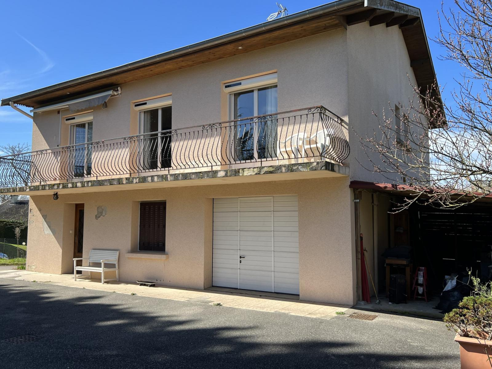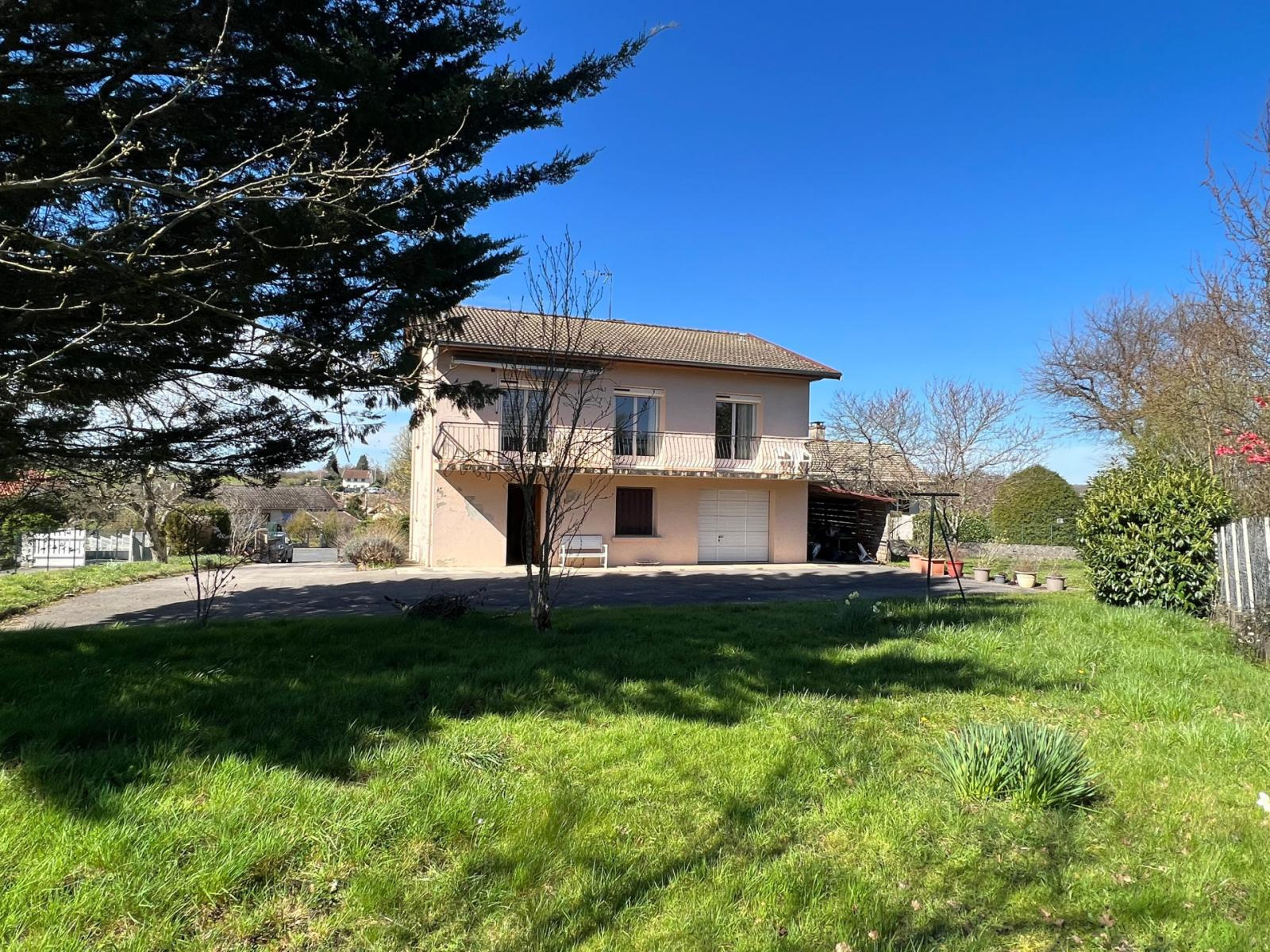 Sur la Commune de Saint Étienne du Bois, située à 15 minutes de Bourg en Bresse, Venez découvrir cette grande maison de 141m² habitable avec son terrain clos arboré de 1.059m². Cette maison à étage se compose ainsi: Nous entrons via le rez de chaussée où vous serez accueillis par une entrée très spacieuse vous menant sur l'espace de vie à l'étage. Là, un grand hall central dessert l'ensemble des pièces. Vous trouverez un charmant séjour de 25m² très lumineux grâce à deux grandes portes fenêtres donnant l'accès à la terrasse de 12m², une belle cuisine aménagée, trois chambres avec placards, une salle de bains et un wc indépendant et de nombreux rangements. Au rez de chaussée vous disposez d'une grande chambre (ou bureau), d'une chaufferie/ buanderie, un cellier et une vraie cave. Un grand garage d'environ 34 m² avec porte automatisée. Sur l'extérieur, un abri vient compléter ce bien. Huisseries: PVC double vitrage et volets roulants solaires dans le séjour et cuisine. Système de chauffage: chaudière mixte fioul et bois. On aime particulièrement: l'esprit chaleureux de cette maison et ces 4 chambres. Cette maison située au calme, est proche du centre de St Etienne du bois et de l'ensemble de ces commodités. Si vous souhaitez plus de renseignements et prévoir une visite, contactez Loïc Didelot au 06.70.75.09.38 Les informations sur les risques auxquels ce bien est exposé sont disponibles sur le site Géorisques : www.georisques.gouv.fr
