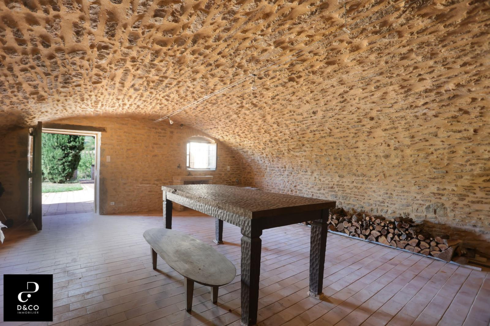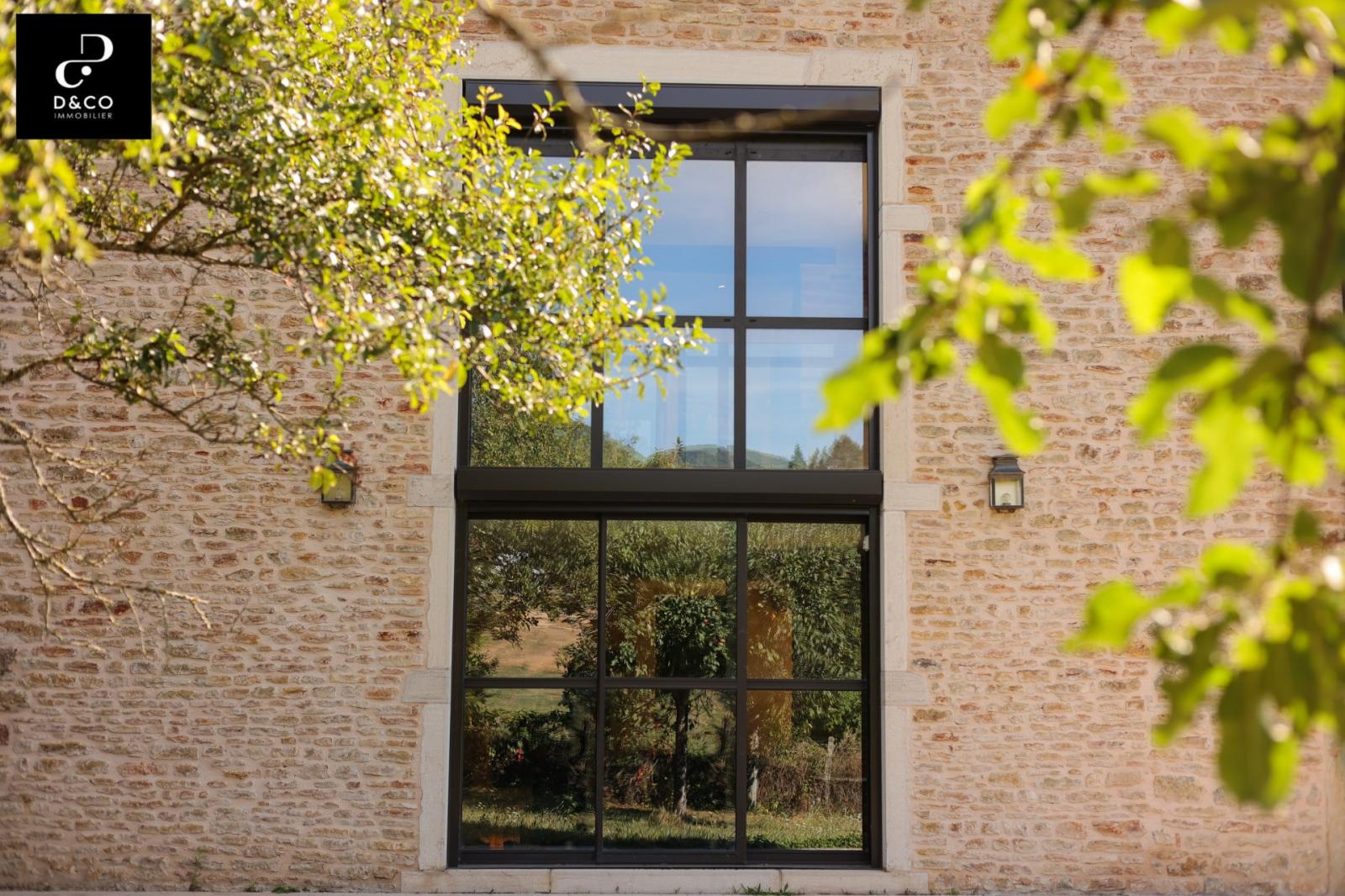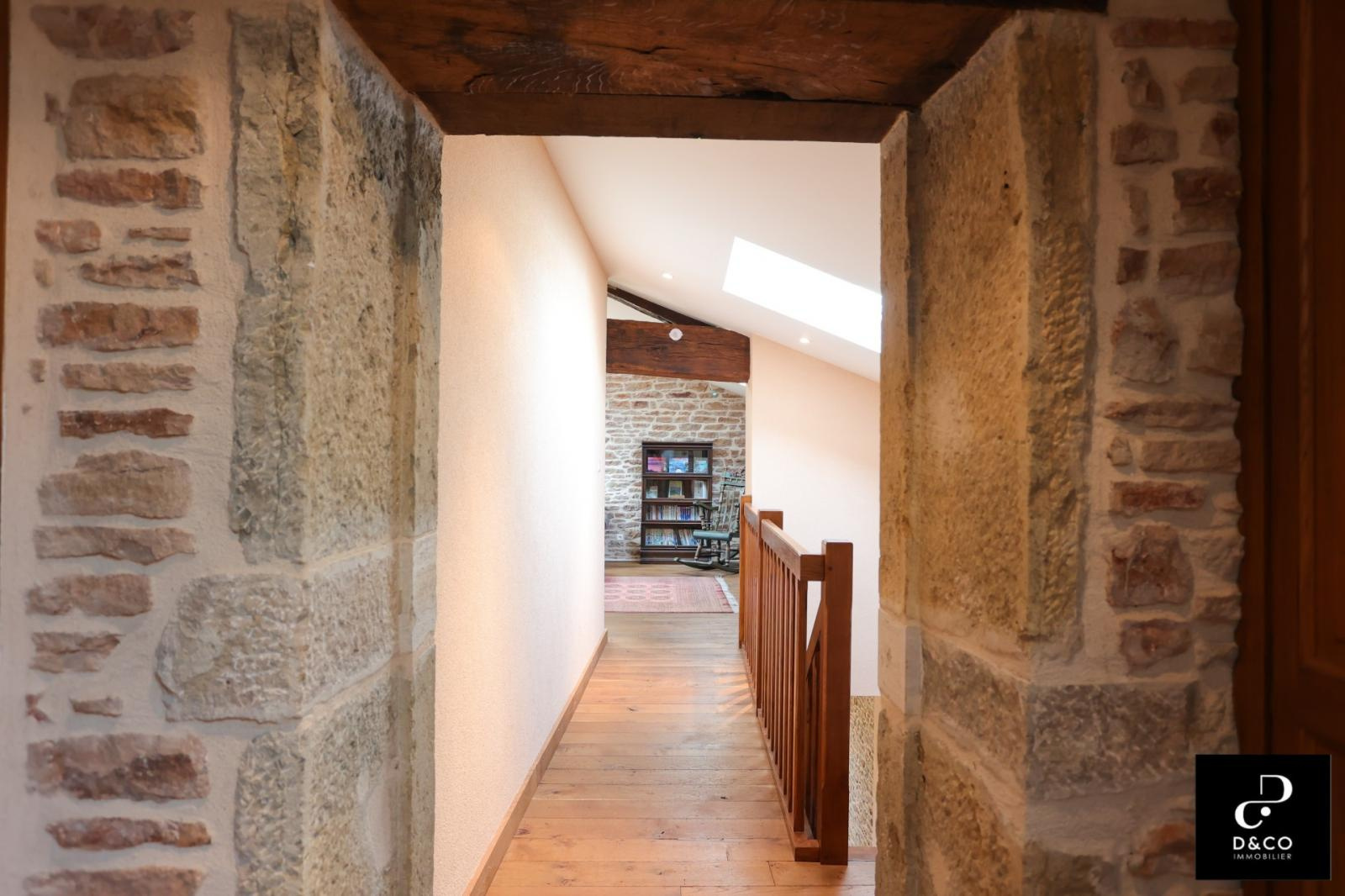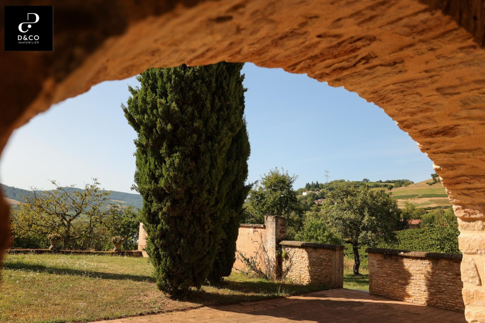 A à 35 minutes nord de VILLEFRANCHE, et à 15 minutes des gares de Macon ville et TGV, au c'ur du Val Lamartinien, découvrez cette magnifique demeure en pierre dans son écrin de verdure, offrant une vue panoramique à couper le souffle sur le château de Pierreclos (XIIe siècle), le vignoble et les collines boisées environnantes. Ce bien exceptionnel, imprégné de charme et d'authenticité, est gage de calme et de tranquillité. La propriété possède une partie rénovée de 220 m² sur trois étages, aux matériaux nobles: murs en pierres jointées, sols en parquet bois ou pierre de Bourgogne. Une magnifique baie vitrée sur deux étages baigne le salon et la salle à manger d'une lumière remarquable, qui donne à cette demeure un caractère unique. La cuisine ouverte se démarque par son sol en tomettes. Au rez-de-chaussée, une cheminée ancienne s'insère dans un grand salon avec plafond cathédrale. Comme toutes les maisons vigneronnes, celle-ci possède sa galerie mâconnaise ainsi qu'une terrasse au second étage, qui offre une vue imprenable. Le 2e étage comprend trois chambres pleines de caractère (et avec vue !) : une parentale avec baignoire et toilette privative, deux avec une salle d'eau à proximité. Au 1er étage se trouve une quatrième chambre, avec salle d'eau et toilette contigües. Ouverte sur la terrasse du 2e étage, la grande pièce « bibliothèque bureau », équipée de deux fenêtres de toit et d'une poutre magistrale, est une pièce absolument magique. Buanderie, chaufferie (gaz de ville chaudière De Dietrich), vastes placards de rangement et toilette équipent confortablement le rez-de-chaussée. Une grande cave voûtée en pierres, de 43 m², avec sol en briques de terre cuite, ajoute un cachet supplémentaire à ce bien d'exception. Quant aux bricoleurs, un atelier est à leur disposition. L'extérieur n'est pas en reste avec sa cour en pavé puis en gravillon et son espace vert arboré de pommiers, poirier, cerisiers, pruniers, mirabelliers, pêchers et cyprès sur plus de 2200 m². Un garage fermé peut recevoir deux voitures, tandis que la cour permet de parquer au moins quatre véhicules. Pour ceux qui aimeraient s'agrandir ou créer une activité parallèle, un bâtiment sur deux niveaux peut être restauré pour proposer environ 100 m² habitables. La toiture de l'ensemble des bâtiments est récente. Cette magnifique demeure à l'esprit cosy et chaleureux, se situe à 10 minutes de la gare TGV Mâcon Loché soit 1heure 50 de PARIS. En voiture, à 45 minutes de LYON et 1heure 55 de GENEVE. Supermarché, Pharmacie, Tea room, boulangerie et boucherie charcuterie sont à 8 minutes. Cette remarquable propriété est non seulement un lieu de résidence idéal, mais elle présente également une excellente opportunité d'investissement dans une région prisée pour son cadre de vie très agréable ainsi que pour la variété des activités et centres d'intérêt offerts, tant culturels que de loisirs : Gastronomie et vignobles de Bourgogne Cluny et sa fameuse abbaye, nombreux châteaux Randonnées pédestres et à cheval, Itinéraires cyclables. Je reste à votre écoute pour tout renseignements au 06.88.88.55.61 Laurent SINTES D&CO, LA ROCHE VINEUSE. Honoraires à charge Acquéreurs. Les informations sur les risques auxquels ce bien est exposé sont disponibles sur le site Géorisques : www. georisques.gouv.fr. Agent commercial RSAC Mâcon 449.566.785 - www.dandco-immobilier.com.