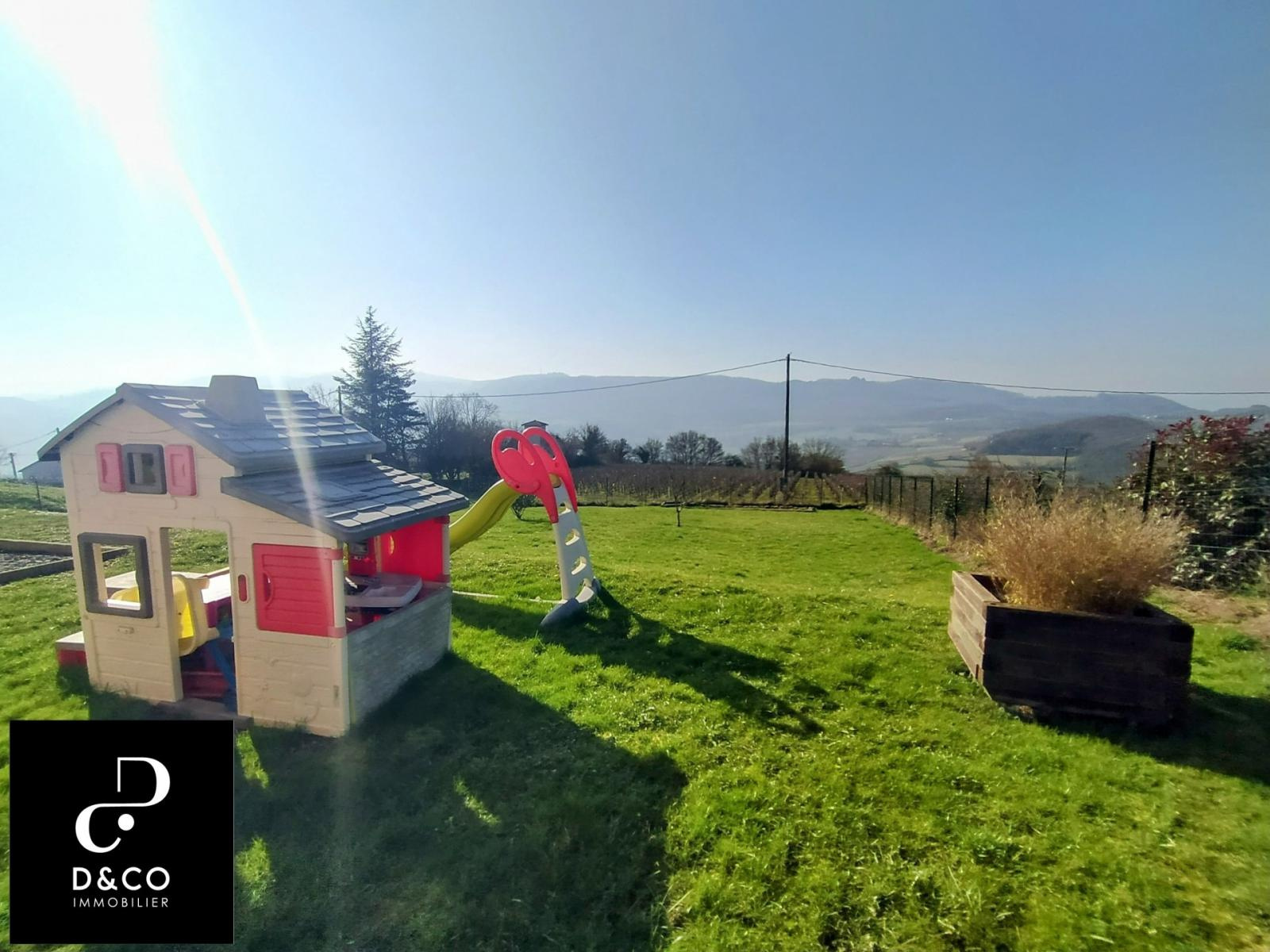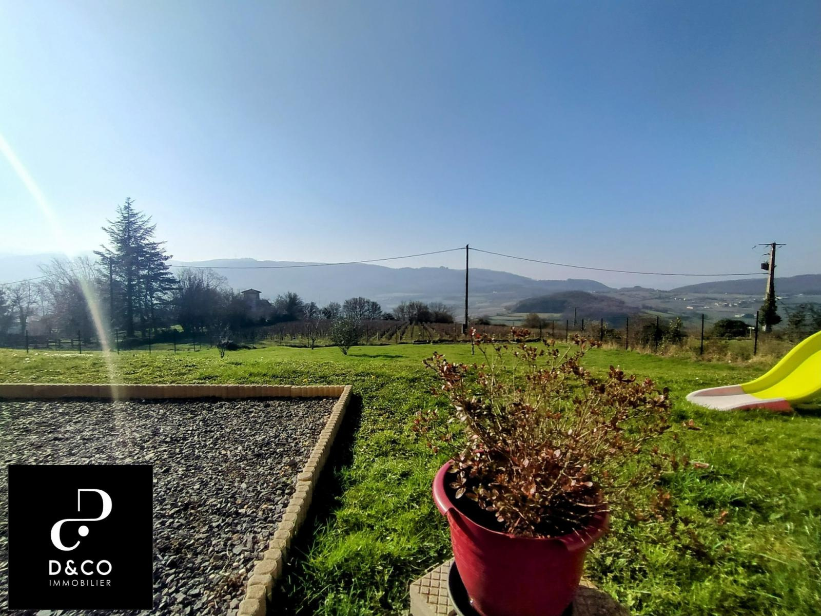 TRES BEL EMPLACEMENT pour ce PLAIN PIED au c'ur du Vall Lamartinien, à 5 minutes de LA Roche Vineuse, des commerces et à seulement 15 minutes de MACON et du TGV. Grande pièce de vie d'environ 40 m², cuisine équipée avec vue sur les montagnes, buanderie. Coté nuit vous disposerez de 3 chambres avec placard dont une avec son propre dressing. Une salle de bain avec baignoire et douche ainsi que sa double vasque. A l'extérieur magnifique terrain d'environ 1000 m² entièrement clos et arboré exposé plain ouest avec son calme et sa vue panoramique sur le Val Lamartinien. Maison récente, Chauffage électrique avec climatisation réversible. Coup de c'ur assuré, Je reste à votre écoute au 06.88.88.55.61 Laurent SINTES D&CO, LA ROCHE VINEUSE. Honoraires à la charge de l'acquéreur. Les informations sur les risques auxquels ce bien est exposé sont disponibles sur le site Géorisques : www. georisques.gouv.fr. Agent commercial RSAC Mâcon 449.566.785. www.dandco-immobilier.com .
