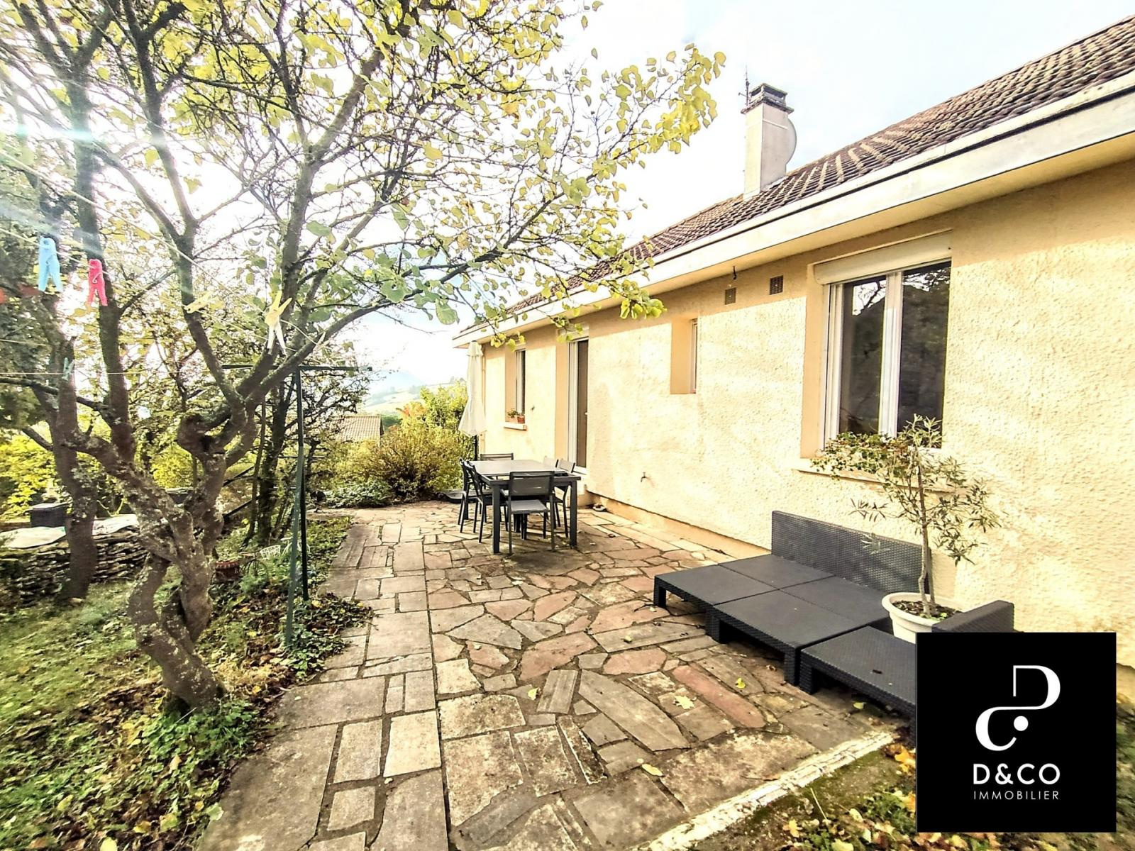 AU CALME avec VUE située à 10 minutes du TGV , de CHARNAY et du centre de MACON sur les hauteurs du val lamartinien. Maison accessible de plain pied avec un sous sol semi enterré. Elle dispose de 4 chambres plus un bureau, cuisine ouverte sur salon, véranda, terrasse avec vue, salle d'eau, toilette. Un grand garage double vous attend avec ses 35m², point d'eau, cave. le tout sur un terrain de plus de 1000 m² plat et arboré. A l'extérieur, au c'ur du val lamartinien, terrasse exposée SUD / EST. Sans oublier son chauffage neuf au gaz de ville à condensation. Je reste à votre écoute au 06.88.88.55.61 Laurent SINTES D&CO, LA ROCHE VINEUSE. Honoraires à la charge du vendeur. Les informations sur les risques auxquels ce bien est exposé sont disponibles sur le site Géorisques : www. georisques.gouv.fr. Agent commercial RSAC Mâcon 449.566.785 - www.dandco-immobilier.com