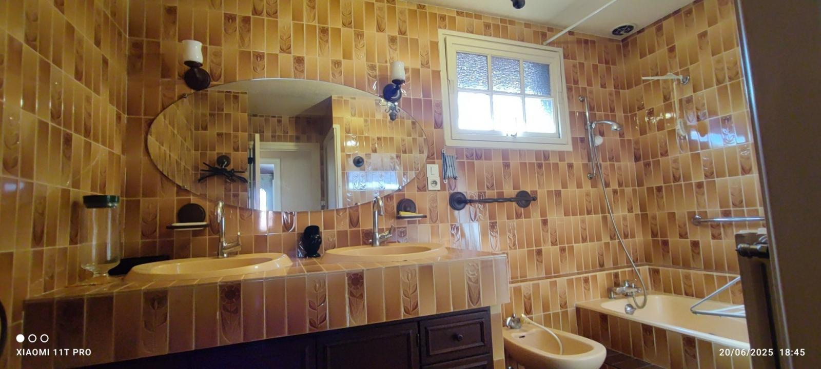 A l'étage, nous retrouvons un hall d'entrée, une cuisine, un salon, un séjour, 4 chambres, une salle de bians, un sanitaire indépendant, un bureau avec placard (surface de 8.09 m²) pouvant servir de chambre et dégagement.