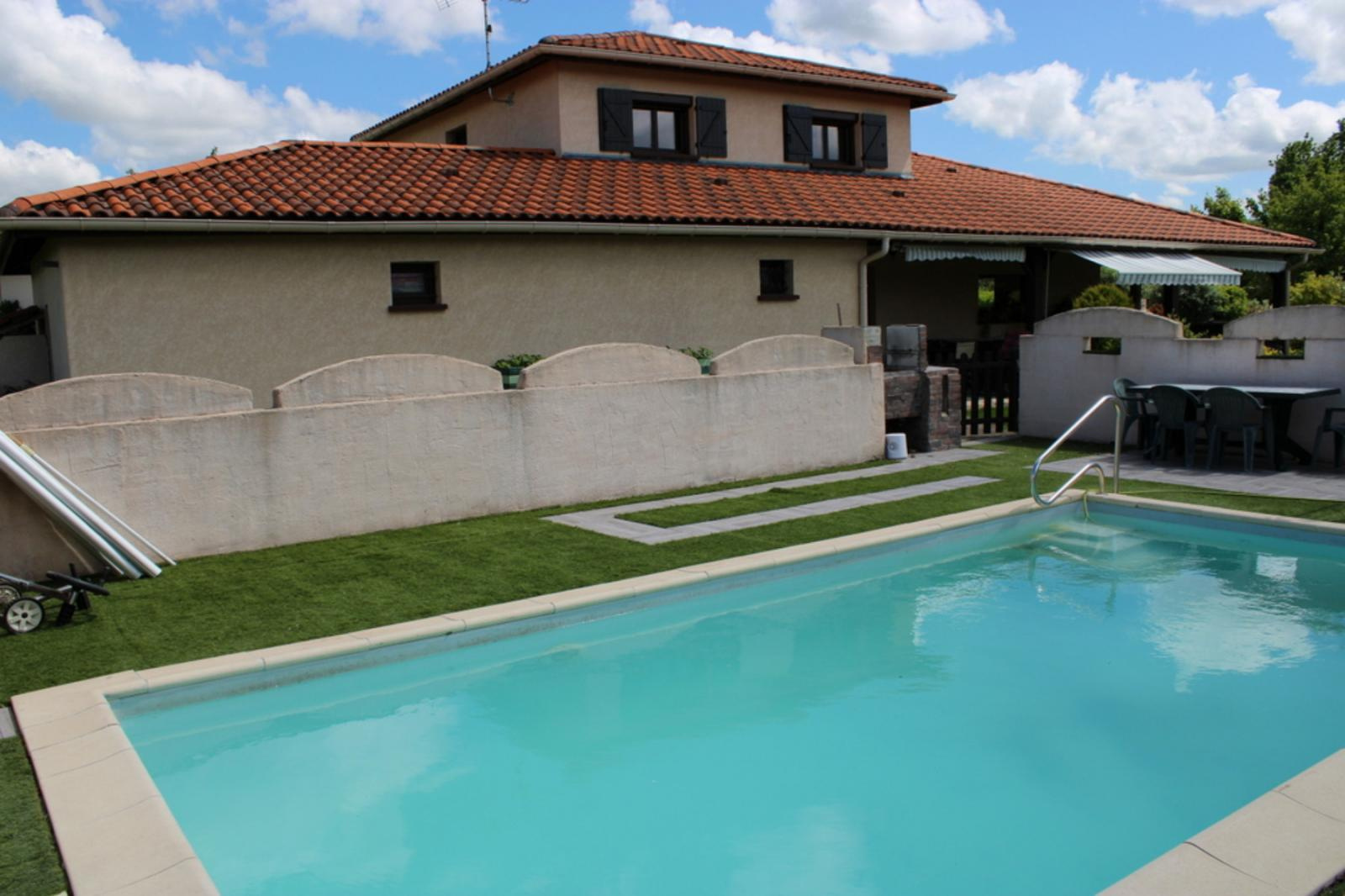 Vonnas Venez découvrir cette ravissante villa de 2010 composée d'une entrée, cuisine ouverte aménagée équipée et spacieux séjour avec plafond cathédrale donnant sur une belle terrasse et piscine, 4 chambres dont une avec suite parentale, bureau, salle de bains WC avec douche et baignoire, WC, cellier, buanderie et double garage le tout sur un terrain clos et arboré de 1279 m².