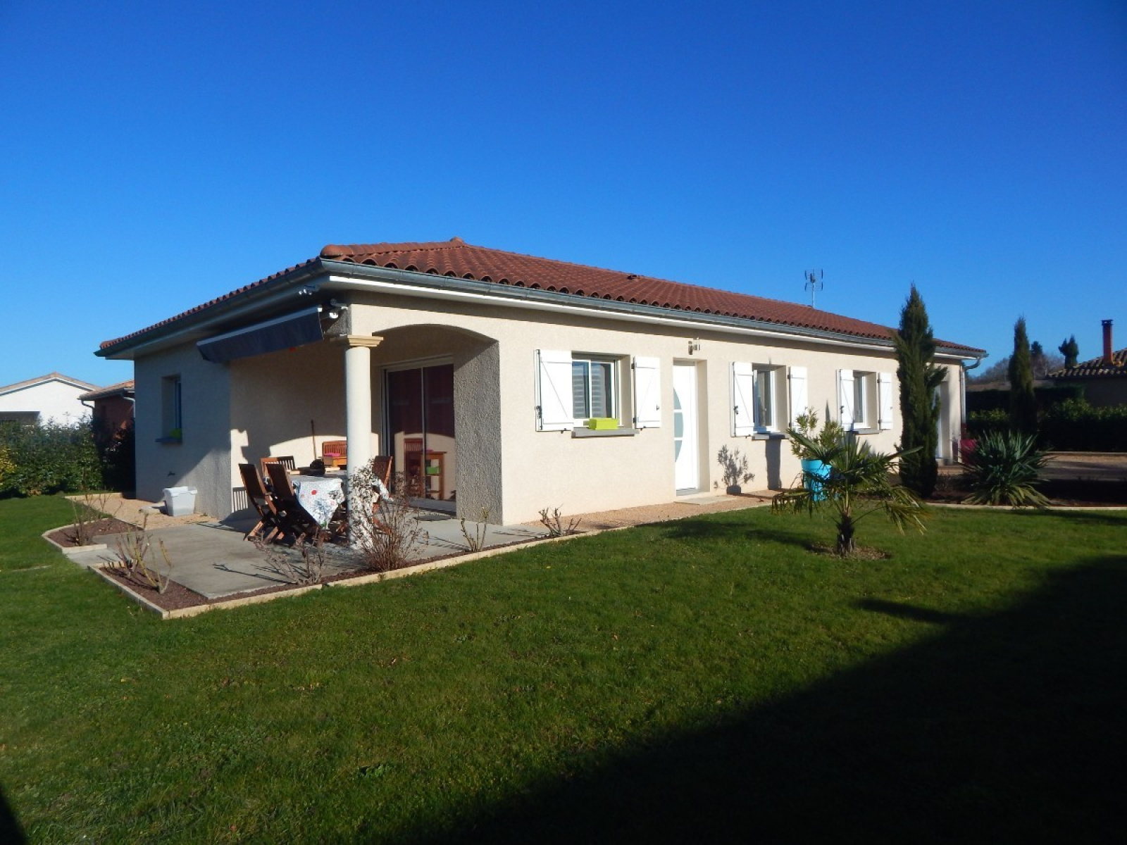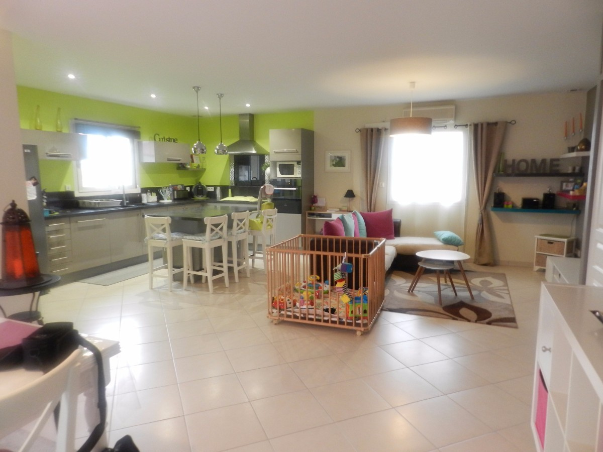 Belle villa de 2012 composée d'une cuisine ouverte et équipée, salon/séjour, bureau, 3 chambres dont 2 avec salle d'eau, buanderie le tout sur un beau terrain de 1059 m2 Pour tout contact appeler Théo CHAGOURIN 06.61.46.63.50
