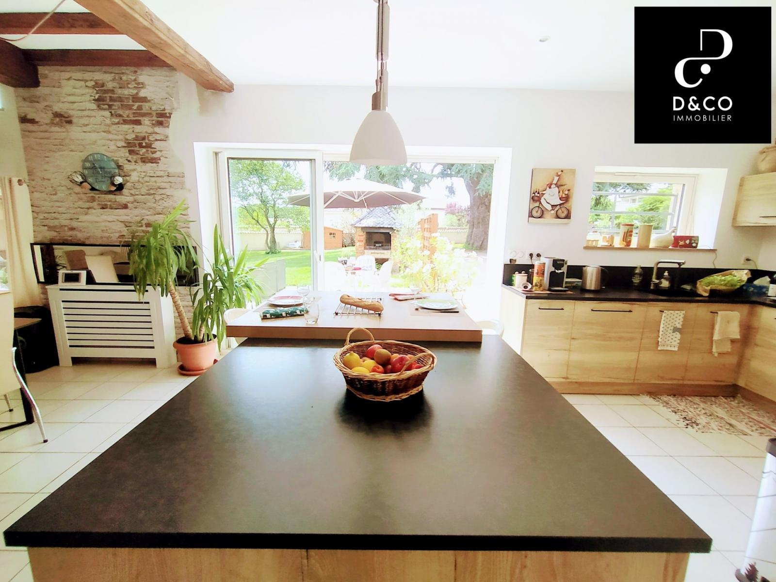 Sur la commune de MACON, au calme dans un écrin de verdure venez découvrir cette grande maison en pierres avec sa galerie mâconnaise. Bâtisse rénovée récemment, (toiture, baie vitrée, cuisine, salle d'eau, chambre). Cette demeure de 180 m² habitable se compose d'une entrée, Cuisine équipée, Séjour Salle à manger, Salon, Buanderie, 3 Chambres, 1 Bureau, 2 Salles d'eau, 3 Toilettes, Combles aménageable, Cave, Atelier. Un parc entièrement clos de mur avec un cèdre magnifique. Idéalement placé dans un quartier typique petit village avec toutes les commodités. Je reste à votre écoute au 06.88.88.55.61 Laurent SINTES D&CO, LA ROCHE VINEUSE. Honoraires à la charge du vendeur. Les informations sur les risques auxquels ce bien est exposé sont disponibles sur le site Géorisques : www. georisques.gouv.fr. Agent commercial RSAC Mâcon 449.566.785 - www.dandco-immobilier.com