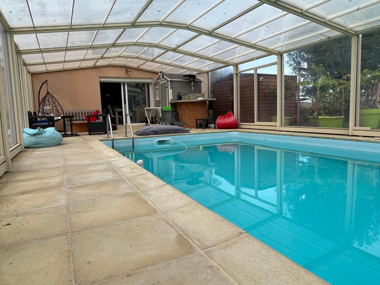 A 5 min de Vonnas, sur la commune de Perrex, Venez découvrir cette très jolie villa d'une surface habitable d'environ 115m². Cette Maison de plain-pied rénovée avec goût se compose de la manière suivante: un sas d'entrée, un grand salon de 36m² avec cuisine ouverte, 4 chambres dont une belle suite parentale avec dressing et salle d'eau, une salle de bains, une buanderie et une cave. Le séjour vous offre un accès direct sur une jolie piscine couverte, qui vous permettra de profiter au mieux de ce lieu de vie très convivial en toutes saisons. Très avantageux, cette maison est équipée de panneaux solaires vous offrant une quasi autonomie en électricité. Sur l'extérieur, un atelier, un châlet de 18m² et un four à pain complète ce bien. Le tout sur un terrain clos et arboré (avec notamment des arbres fruitiers) d'une surface de 2432m² environ. Proches des transports. Si vous souhaitez plus de renseignements, n'hésitez pas à me contacter au 06.70.75.09.38.