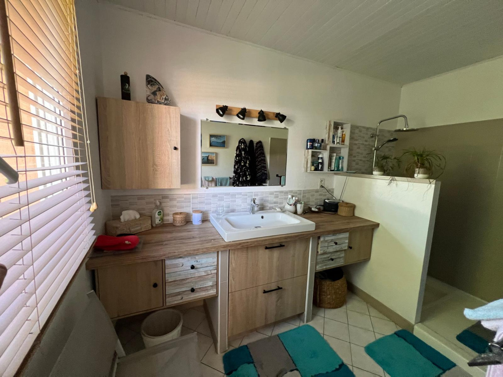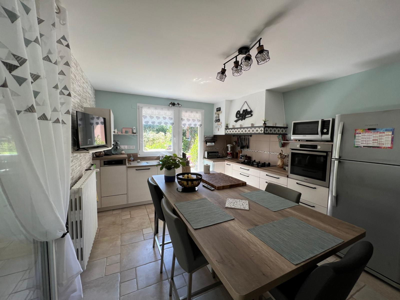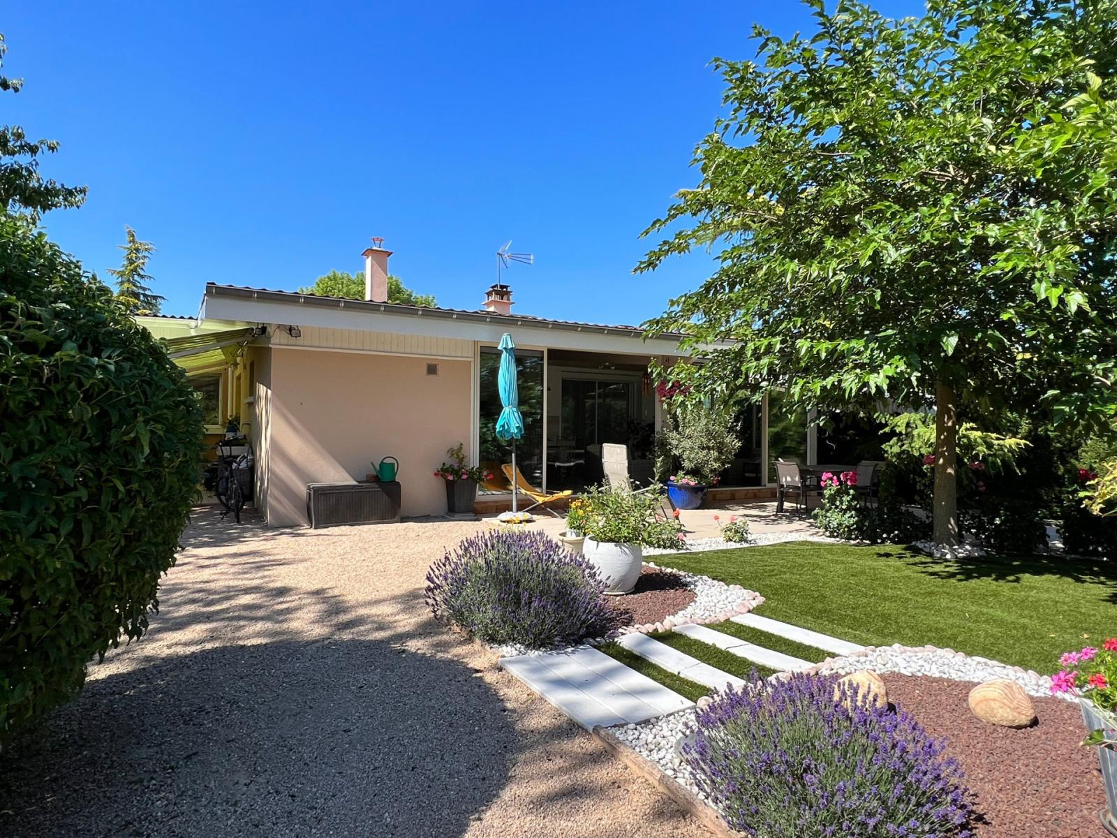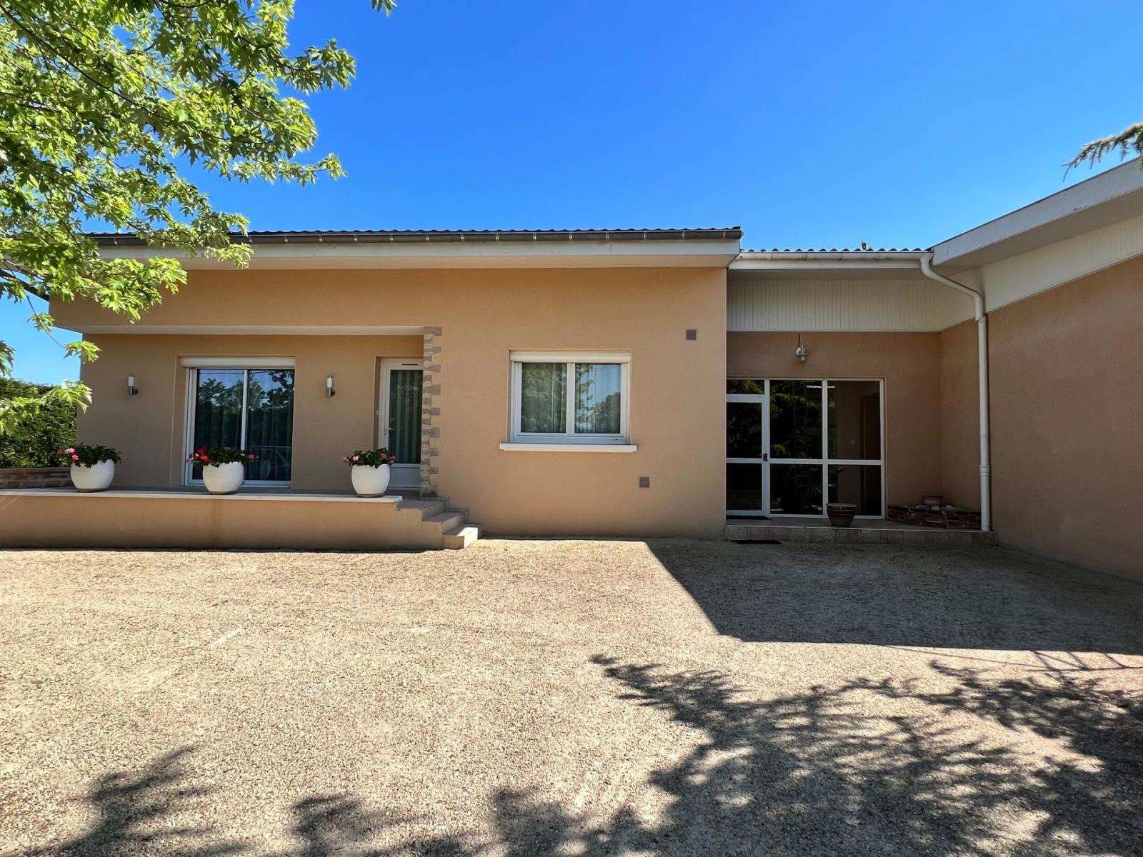 Située sur la commune de Mézériat à 5 min de Vonnas, venez découvrir cette jolie villa de plain pieds de 140m² environ, Cette villa vous propose une belle entrée, un grand séjour avec cheminée, donnant sur une belle véranda de 33m², une cuisine entièrement rénovée et équipée avec un îlot central, deux chambres dont une suite parentale avec une salle d'eau, un bureau (possibilité pour une troisième chambre), un wc, une salle de bains. Sur l'extérieur, un grand garage de 57m² avec deux doubles portes (possibilité de rentrer un camping car) et un atelier de 15m² vient compléter ce bien. Vous trouverez également une magnifique piscine entièrement sécurisée et un abris de jardin. Le tout sur un terrain paysagé entièrement clos et joliment arboré d'environ 2000m². Proximité des commerces du village. Pour plus de renseignements, n'hésitez pas à nous contacter au 06.70.75.09.38.