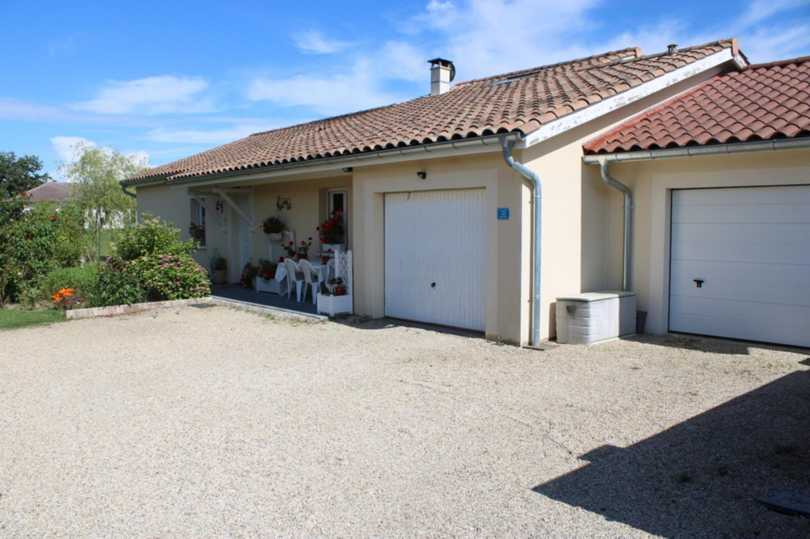 Mézériat. Charmante villa de 2008 hors lotissement composée d'un spacieux séjour et salon, cuisine ouverte aménagée équipée donnant sur une ravissante terrasse couverte, 3 chambres dont une avec suite parentale, grande salle de bains bal-néo, grande buanderie cuisine d'été, atelier et double garage le tout sur un ravissant terrain clos automatiquement et arboré de 1006 m².