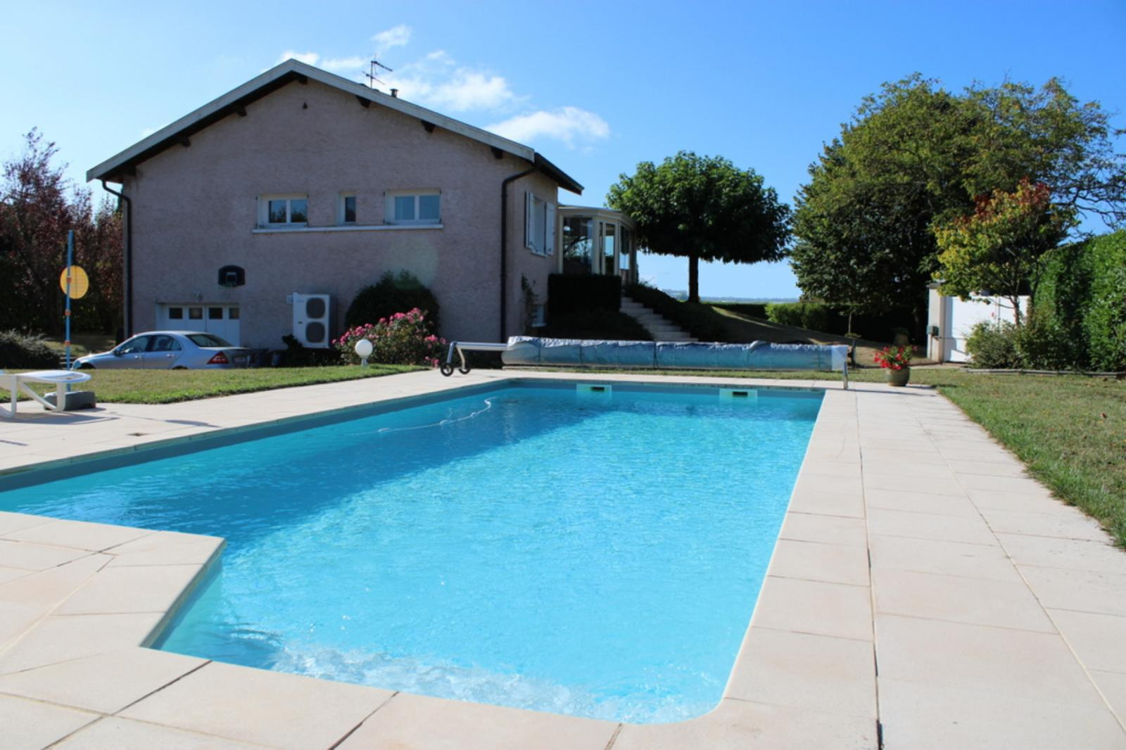 Mézériat Venez découvrir cette ravissante maison hors lotissement composée, d'une entrée, cuisine indépendante aménagée équipée et spacieux séjour de 41 m² donnant sur belle véranda et jolie terrasse avec vue splendide, 5 chambres, salle de bains, WC, salle d'eau WC, buanderie, cave, chaufferie-cellier ( pompe à chaleur), grand garage, piscine chauffée, pool house le tout sur un terrain clos et arboré de 1513 m².