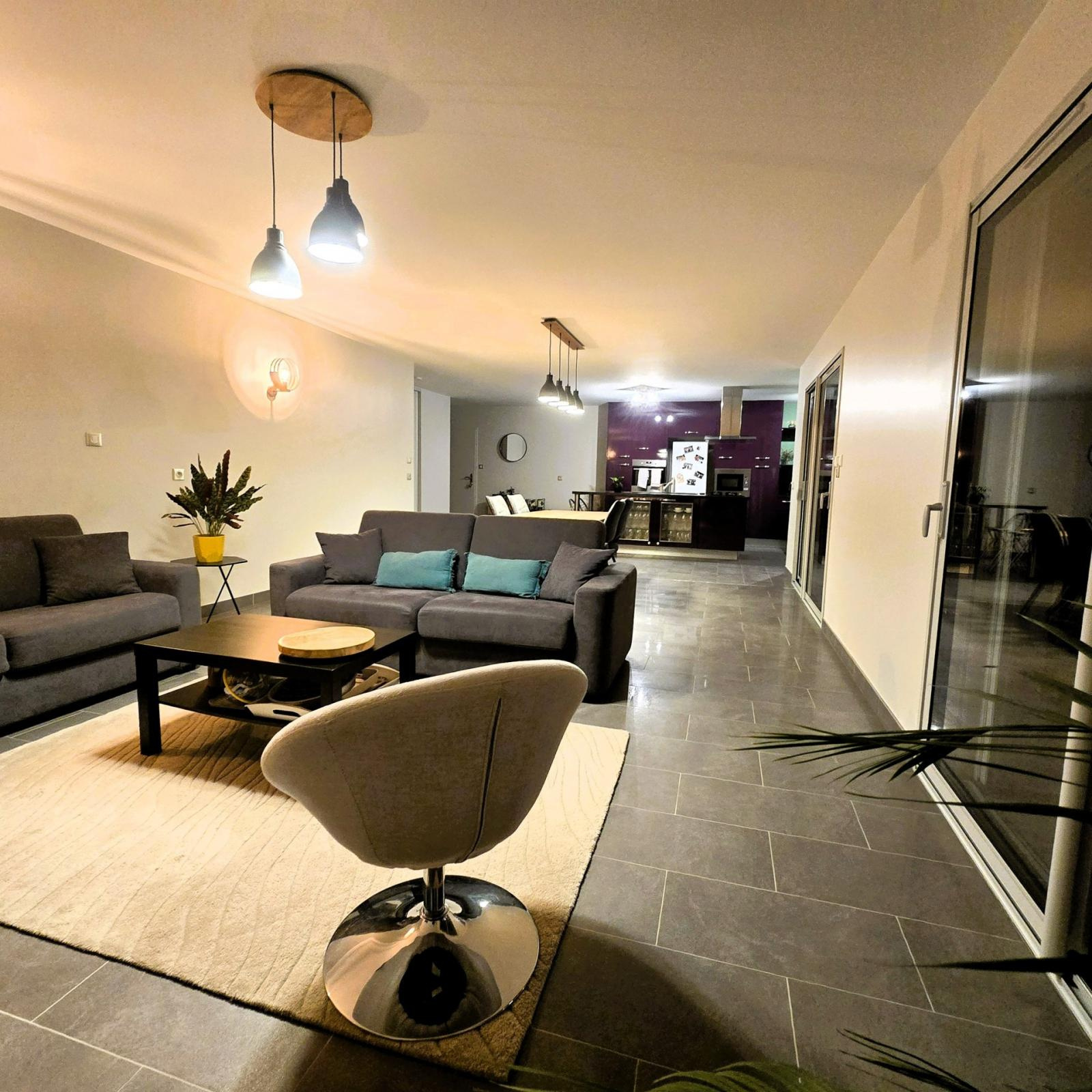 Très lumineuse, cette maison est composée d'un séjour-salon avec cuisine équipée ouverte de 68.85 m2; une chambre avec dressing, une chambre, une salle de bains avec douche et baignoire, une buanderie; un garage; le tout sur un terrain d'env 850 m2 entièrement clos. Une piscine de 8 x4 et un jardin vue campagne, une immense pièce de vie donnant sur la piscine vous donneront l'impression d'être en vacances en permanence ! Possibilité de faire une troisième chambre facilement. .