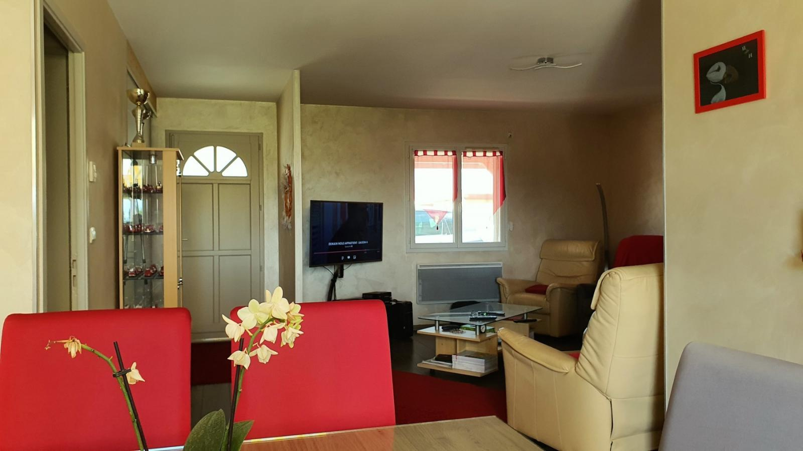Une jolie maison de plain pied sur un terrain de plus de 1000 m2 donnant sur les champs à visiter sans tarder. Elle est composée d'une grand salon de plus de 35 m2 avec une cuisine ouverte, un coin nuit avec 3 chambres, une salle de bains équipée de douche et baignoire, un wc; un cellier et un garage. A l'extérieur, deux chalets (dont un grand) pour l'outillage ou autre... Un grand espace der verdure sur l'arrière qui ouvre l'espace sur les prés et une cour sur le devant de la maison, portail électrique.
